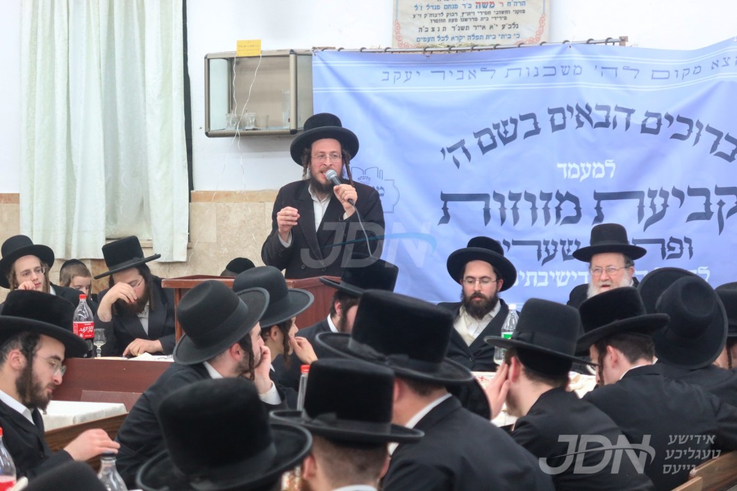 מעמד קביעת מזוזה אין ביהמ"ד החדש קהל יטב לב ד'סאטמאר שכונת פארט וואורט אין בלומינגראוו, קרית יואל