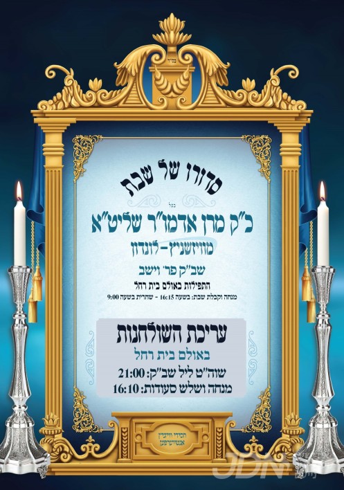 כ"ק אדמו"ר מוויזניץ שליט"א פון בית שמש איז צוגאסט אויף דעם שבת אין בני ברק בקרב חסידיו, די תפילות און טישן קומען פאר בבית מדרשו קהל אהבת שלום וויזניץ אויף רחוב מלצר.