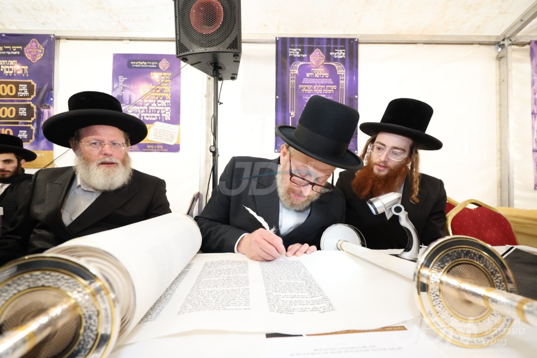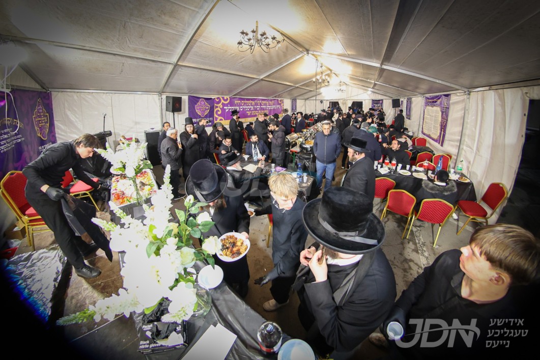 הילולא קדישא אין ליזענסק דורך הכנסת אורחים רבי ר' אלימלך'ס הויף שע"י נכדי הרה"ק הרבי ר' אלימלך זי"ע אינאיינעם מיטן מעמד חנוכת המקוה און סיום כתיבת ספר תורה בראשות האדמו"ר מליזענסק