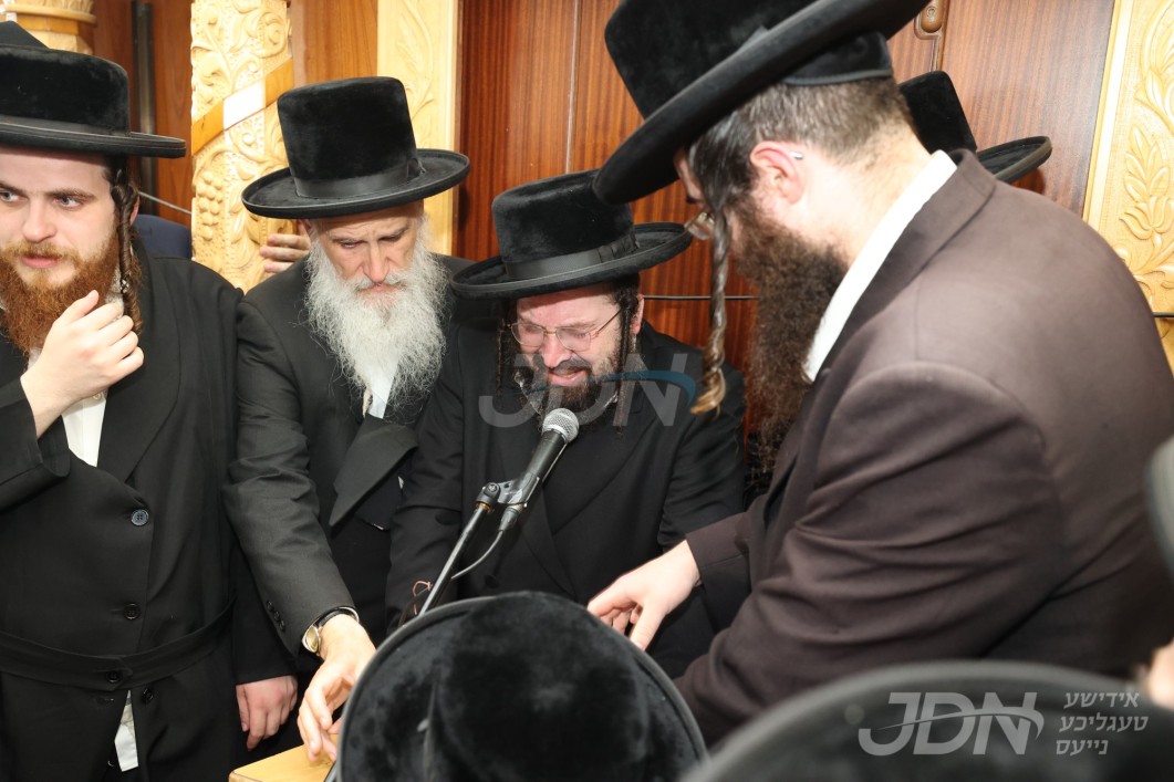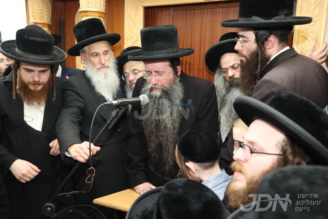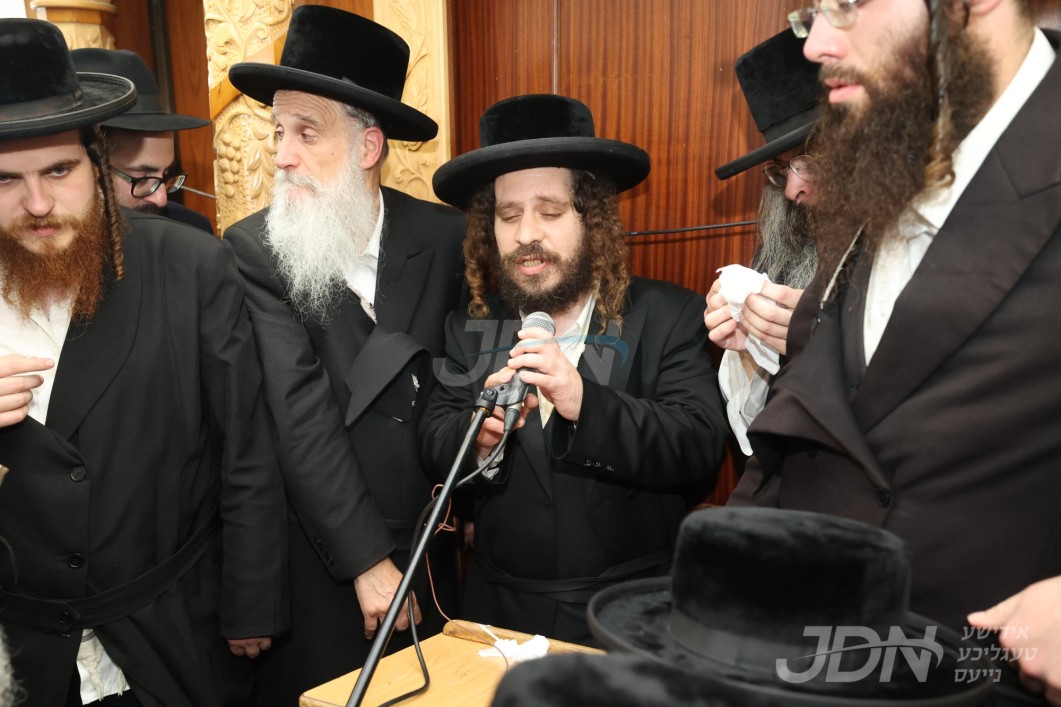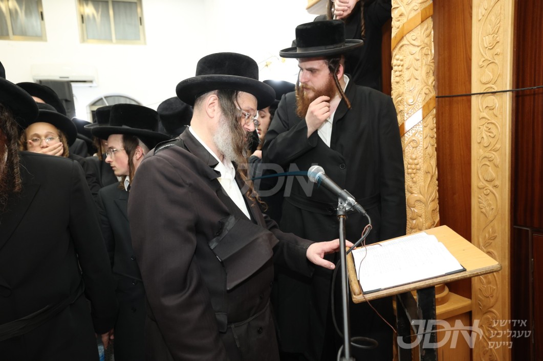 ניין דרייסיג אויפדערנאכט האט זיך אנגעהויבן די גרויסע לוויה בבית מדרשו של רבי, צוערשט האט הרב החסיד ר' מאניש בערגער הי"ו מגבאי הביהמ"ד פארגעזאגט פרקי תהלים און סליחות בקול ראש חזק, און דערנאך האט זיך אנגעהויבן די הספדים, לויטן פאלגענדן סדר: