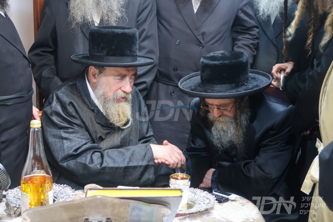 האדמו"ר מסקווירא באזוכט ביי גיסו האדמו"ר מוויזניץ אין שיכון סקווירא