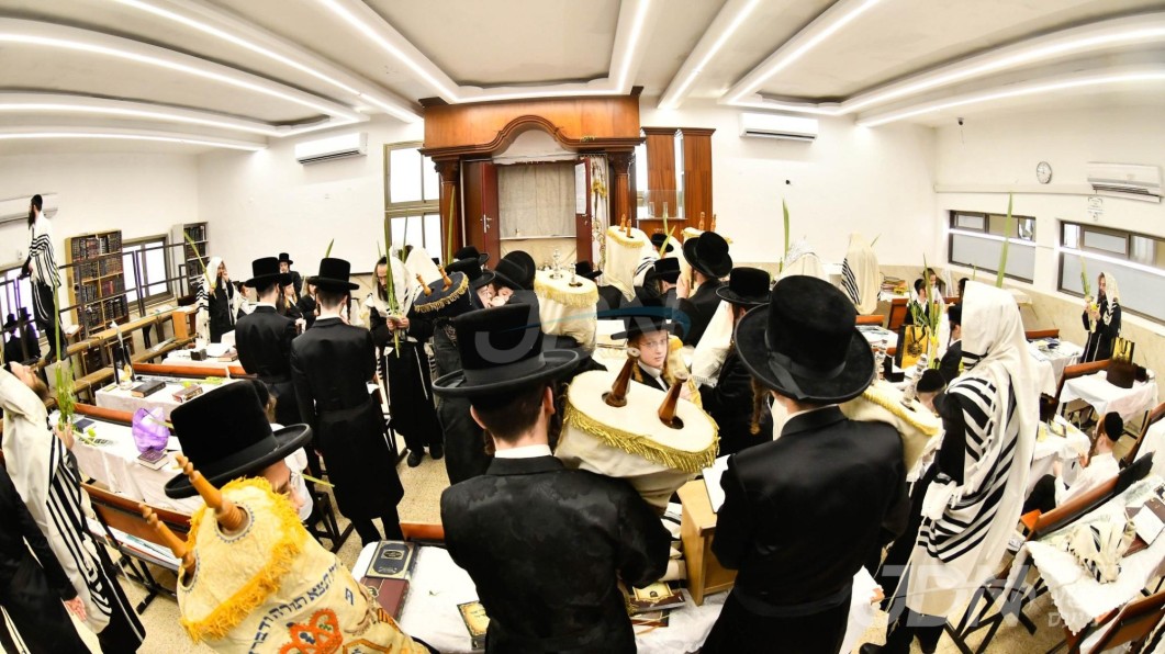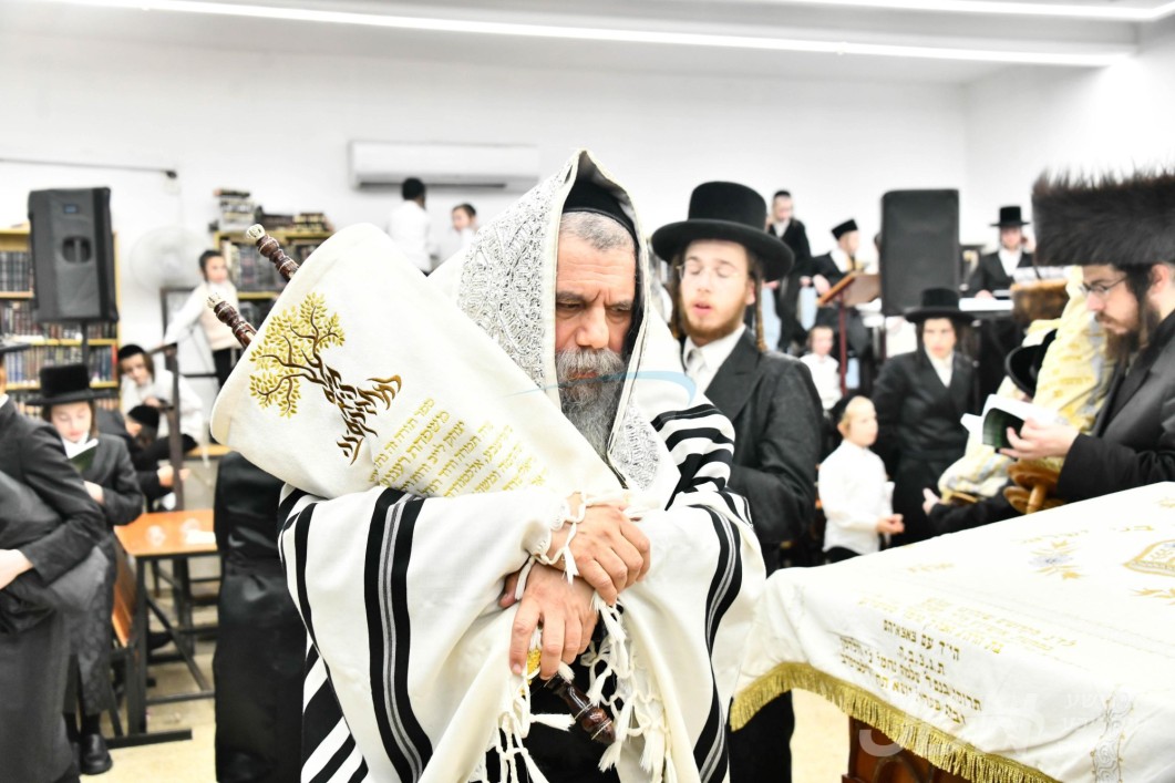 האדמו"ר מקארלין סטאלין איז מתפלל ביים כותל המערבי חול המועד סוכות