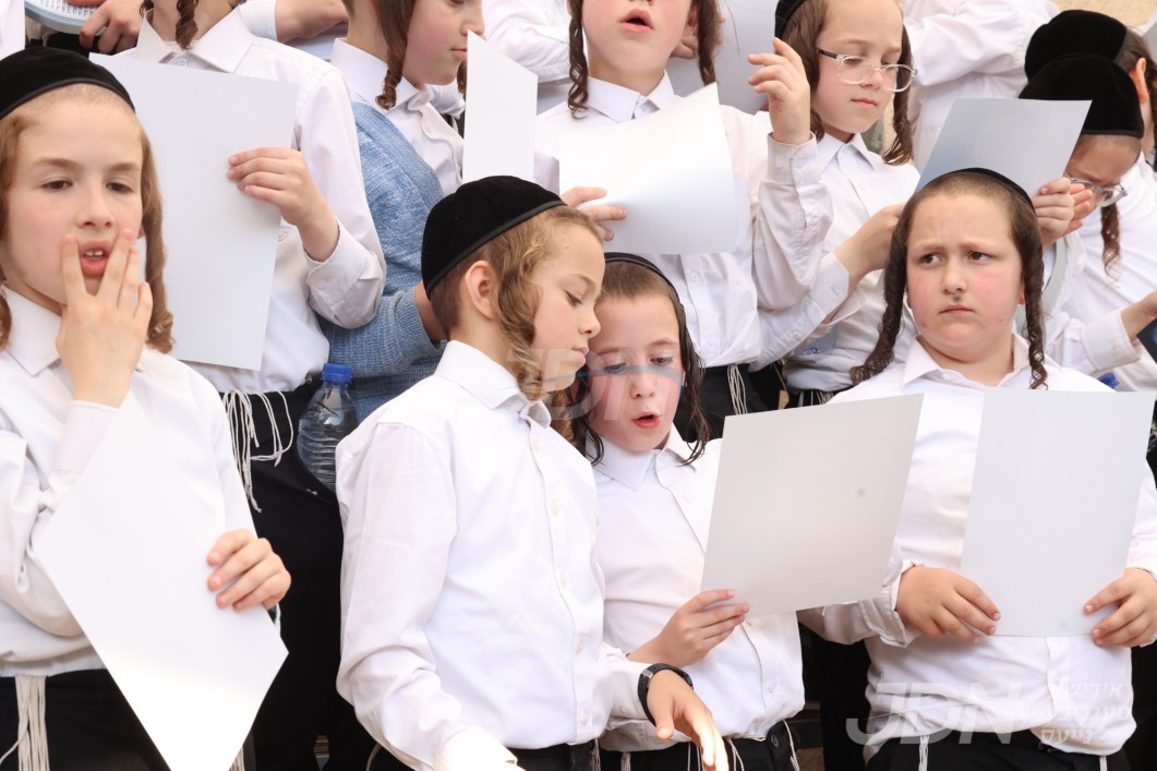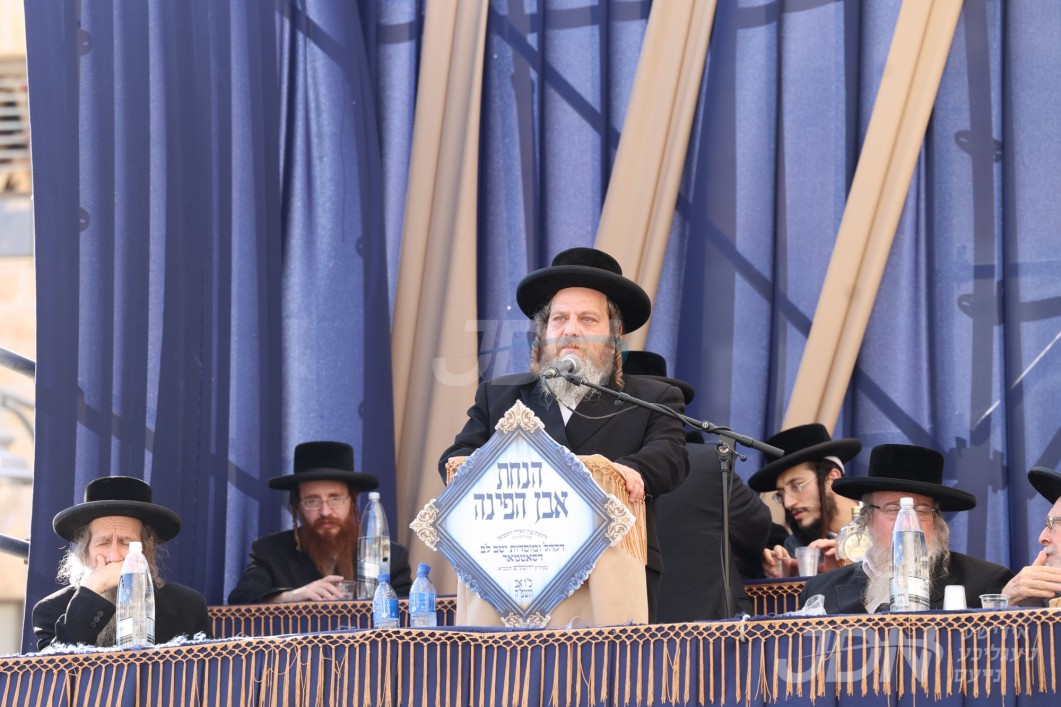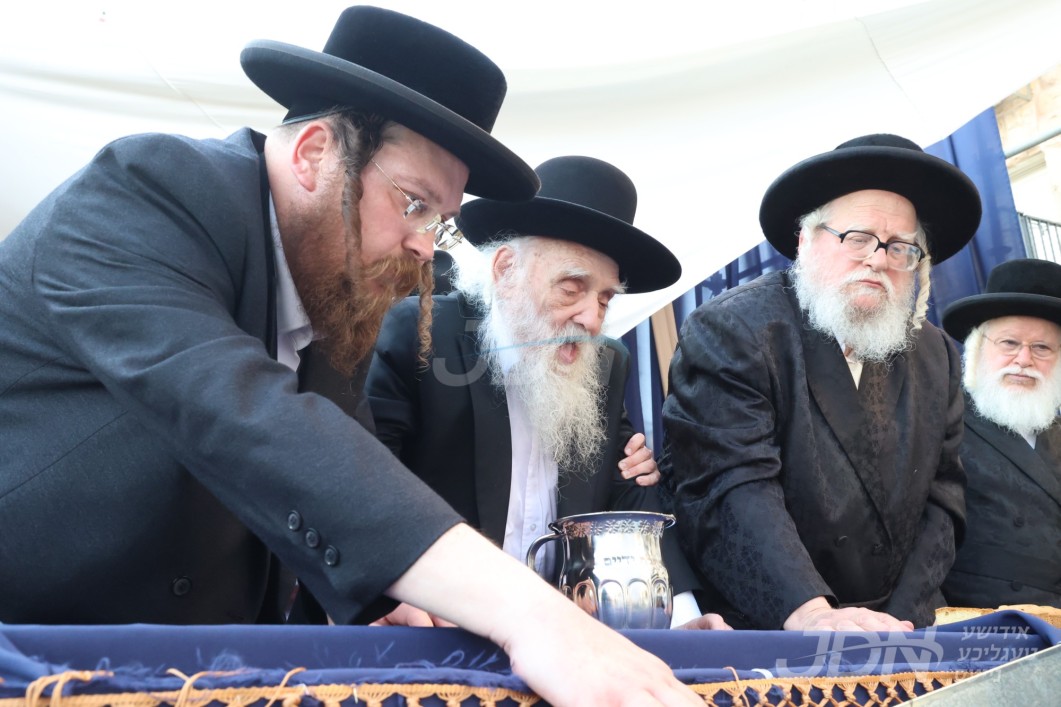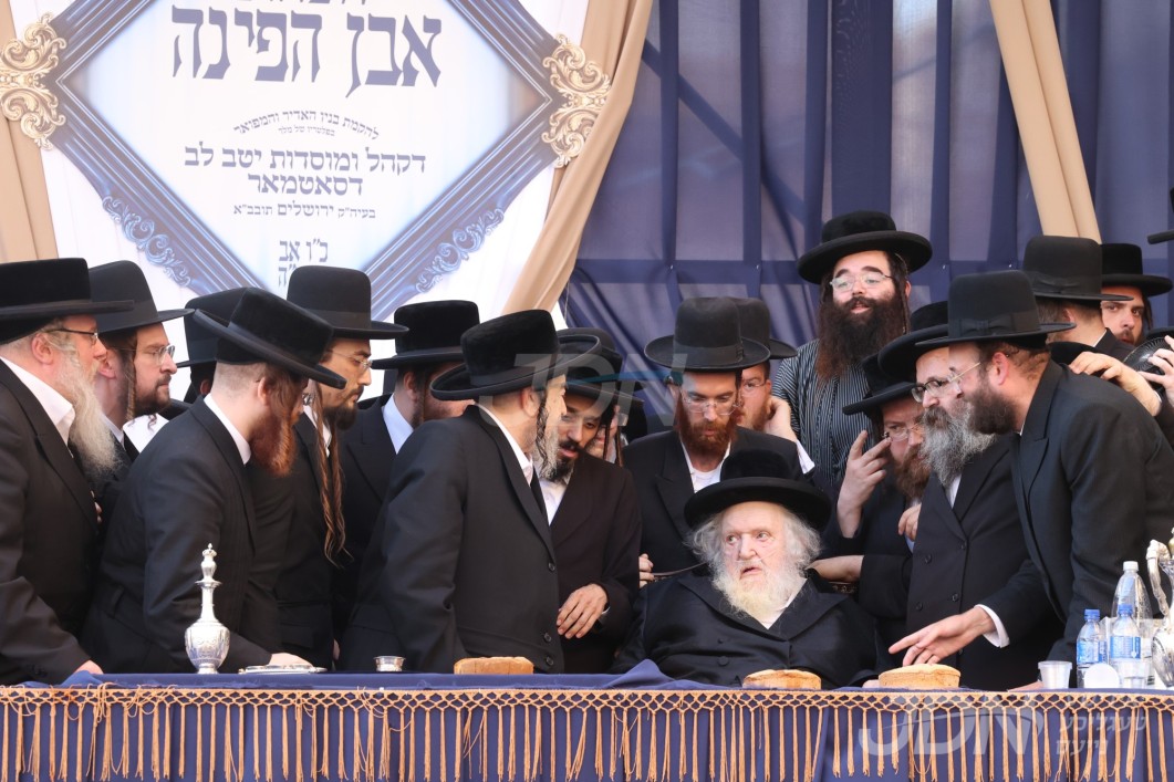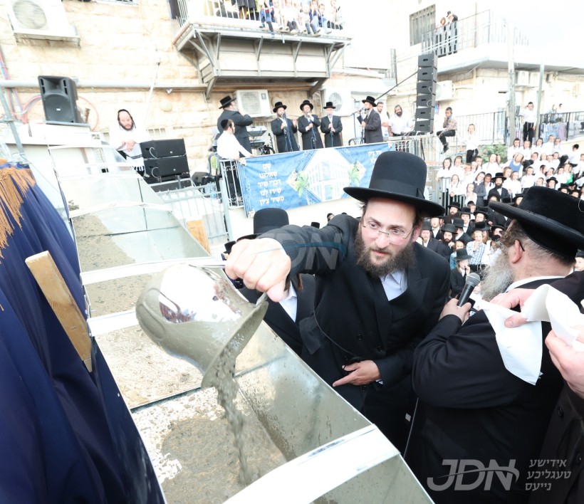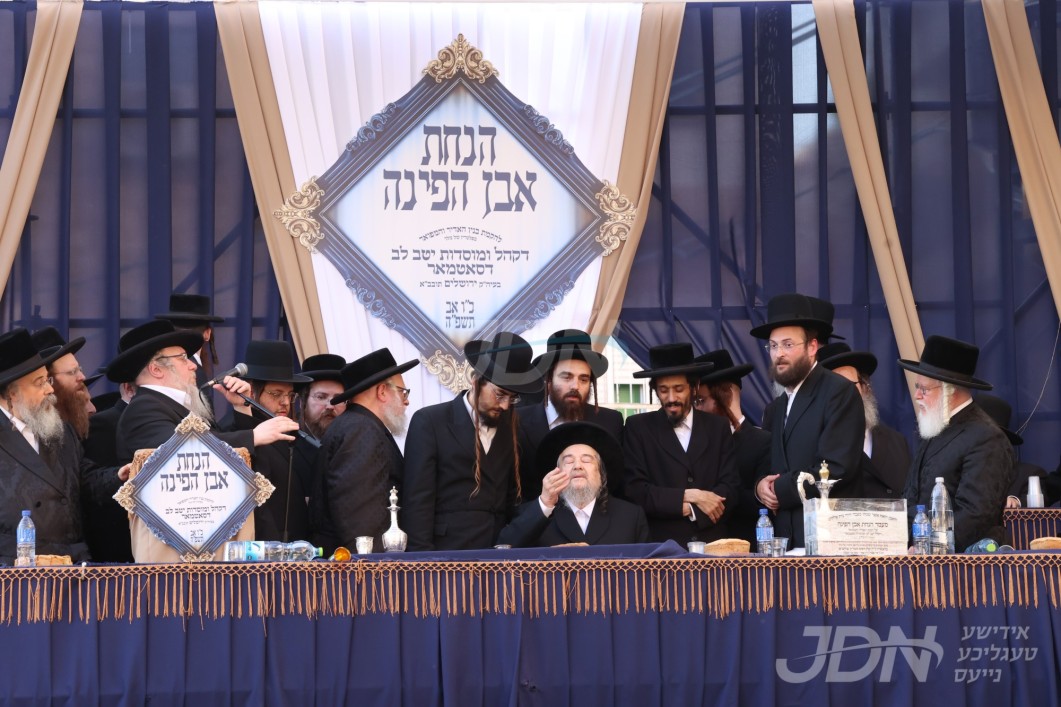 מעמד הנחת אבן הפינה פון בנין ישיבה קטנה כרם שלמה ד’באבוב אין סטעטן איילענד