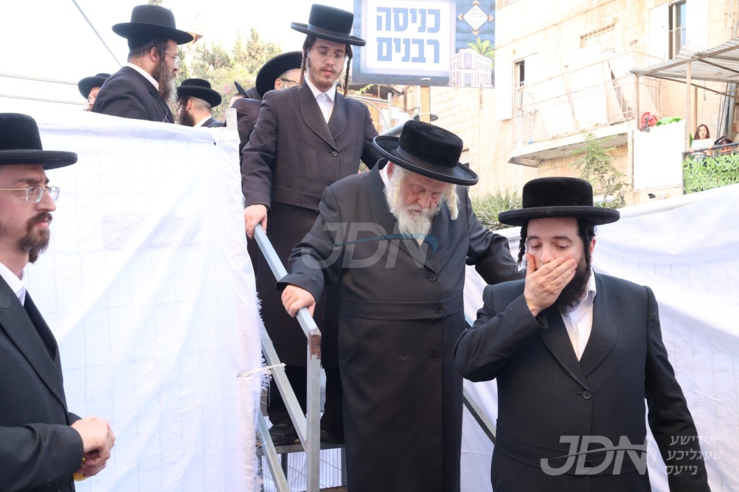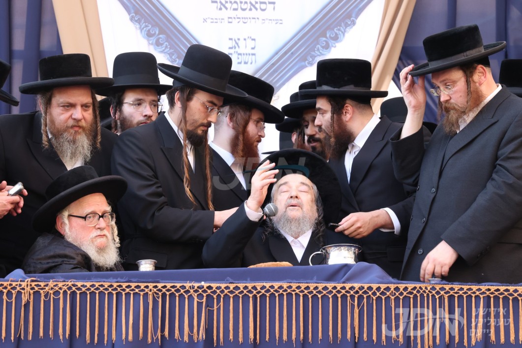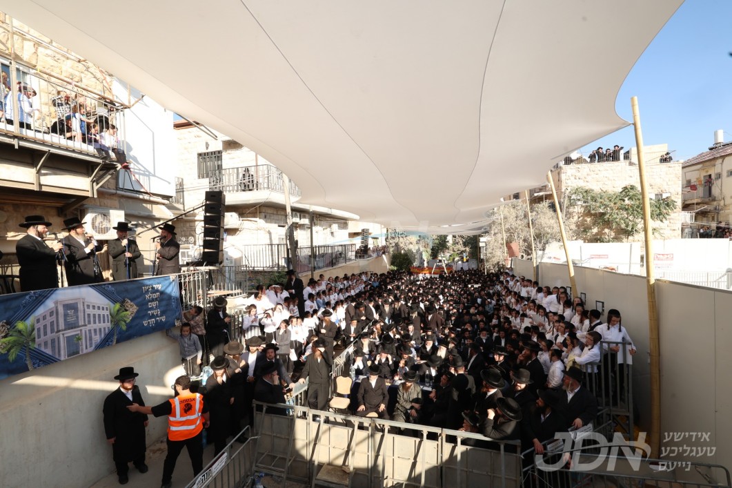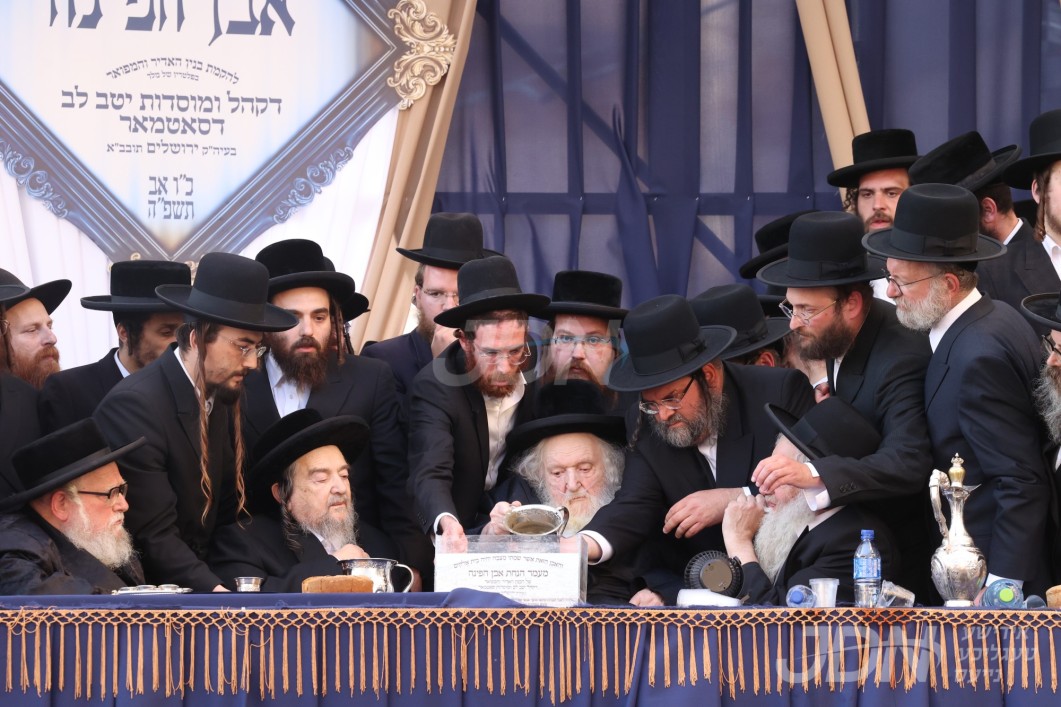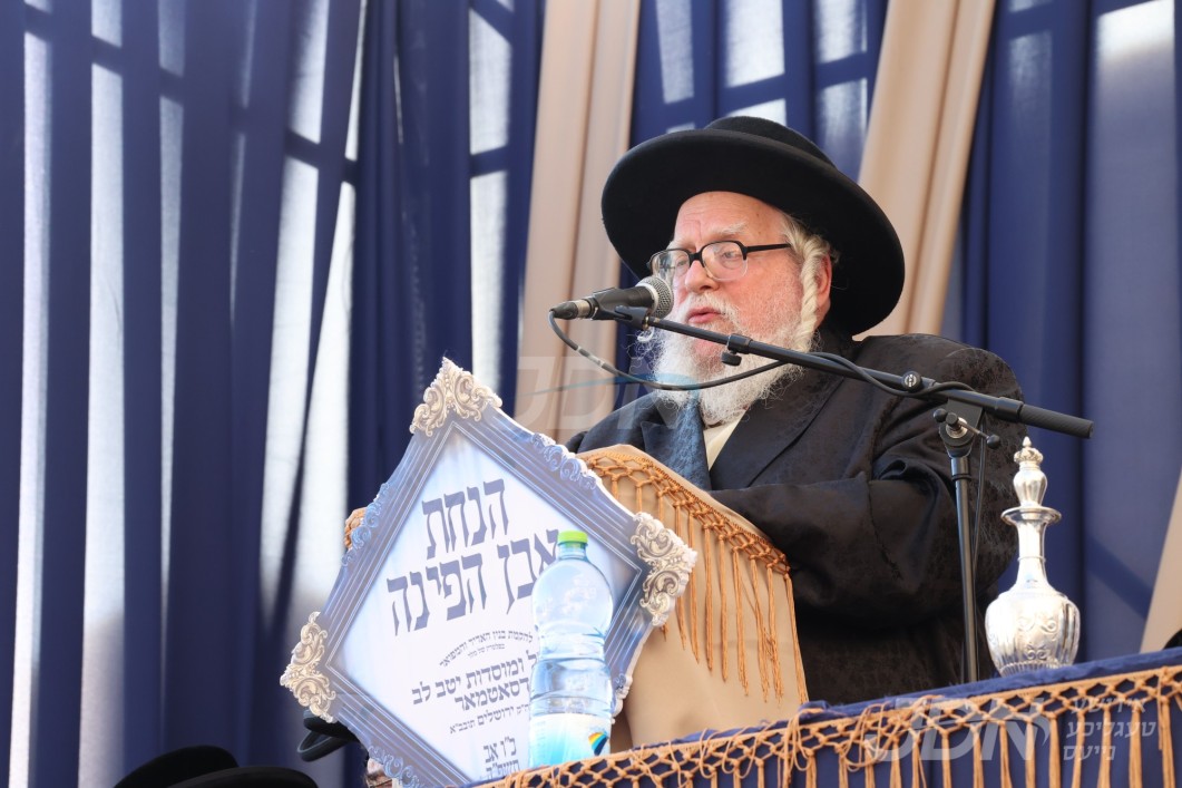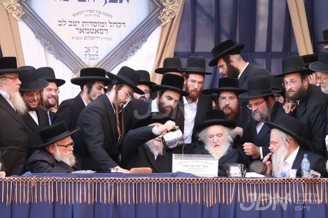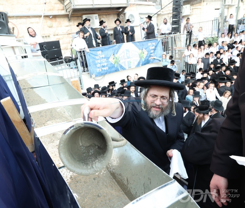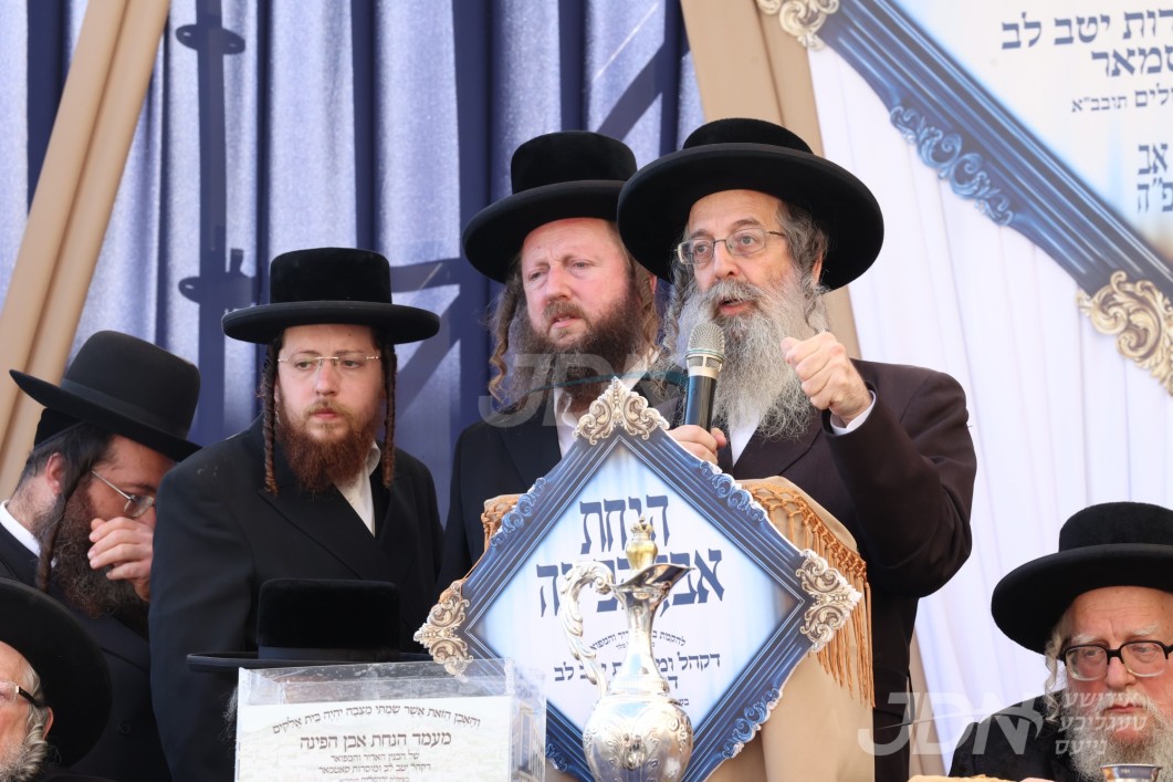מעמד הנחת אבן הפינה פון בנין קהל און מוסדות יטב לב ד'סאטמאר אין ירושלים