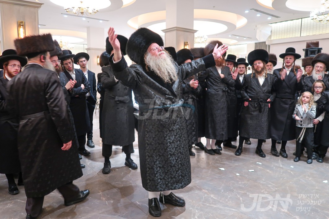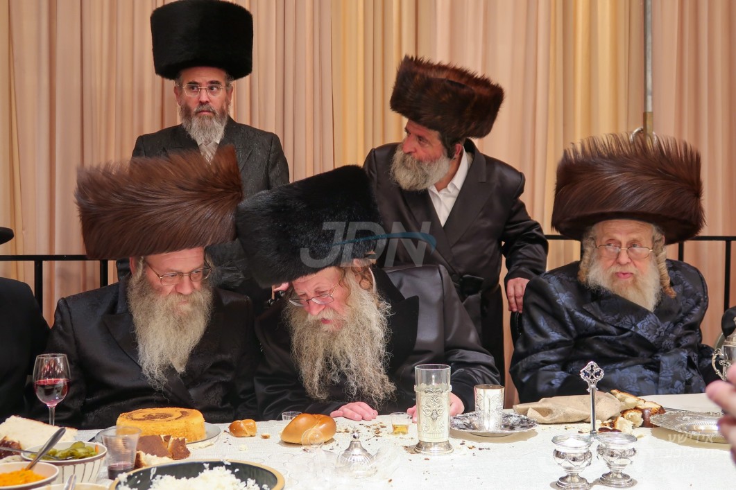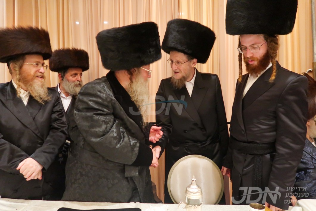 בראש המסובים: האדמו&quot;ר מסקאליע אנגעקומען אויף א געהויבענעם באזוך בעיר הבירה לאנדאן לרגל א משפחה שמחה
