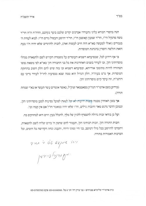 ווי באקאנט פירט זיך די בוהושער מוסדות על טהרת הקודש, אן קיין שום הכנסות פון די ארטיגע רעגירונג, בהוראת הקודש פון כ"ק אדמו"ר מבוהוש שליט"א, און צו אויסהאלטן א מוסדות אויף אזא פארנעם קאסט שווערע געלטער אויף יעדע טריט און שריט.