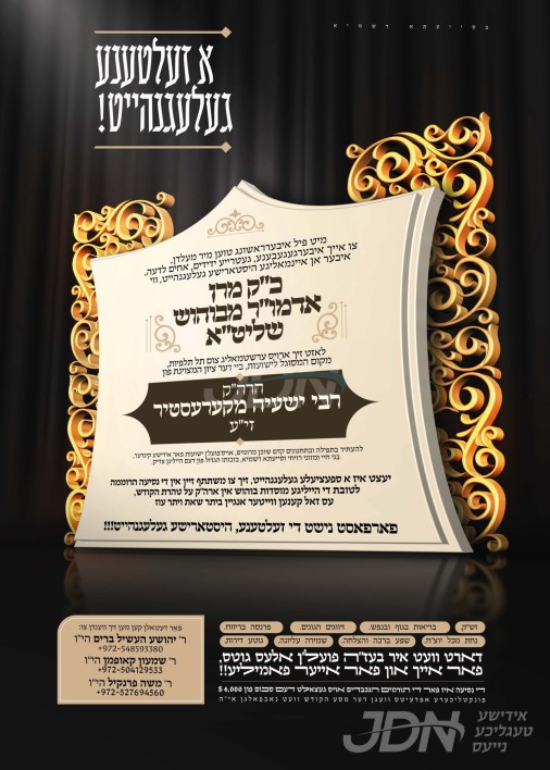 מטעם הנהלת מוסדות בוהוש בארץ הקודש ווערט געמאלדן איבער א ערשטמאליגע נסיעה וואס כ"ק אדמו"ר מבוהוש שליט"א נעמט אונטער אויפצוטרייבן שטיצע לטובת די מוסדות, ווען דער רבי וועט ארויספארן צום נאסטאלגישן שטאט קערעסטיר אין אונגארן, אינאיינעם מיט א געקליבענע צאל נדיבי לב תומכי המוסדות, וואס וועלן זיך אנשליסן מיט באדייטענדע סכומים ארויסצוהעלפן שליכטן די שווערע חובות אין וואס די מוסדות געפונט זיך.