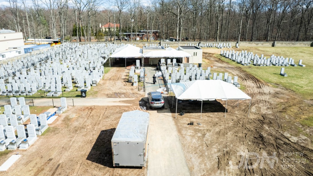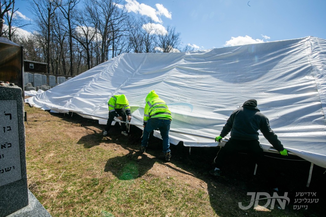 די בארימטע 'רענטעסטיק' פירמע ביים אויפשטעלן די שאטער'ס אין בית החיים אין שיכון סקווירא, לקראת די יומא דהילולא קדישא פון הרה"ק מסקווירא זי"ע, דעם פרייטאג פ' ויקרא ב' ניסן