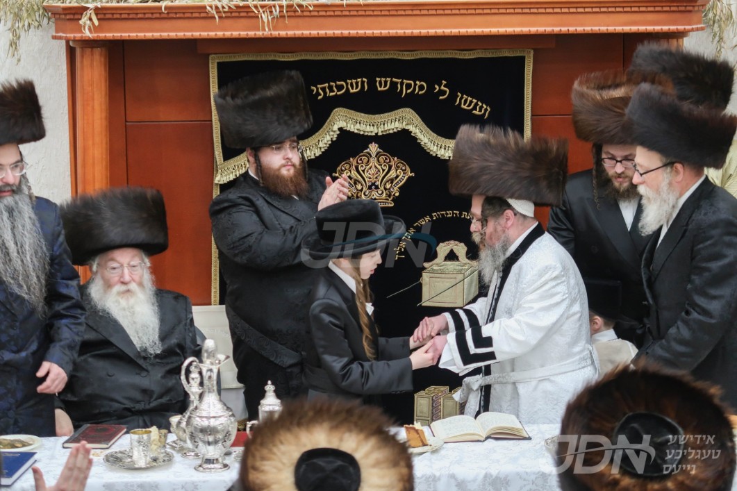 שמחת השבע ברכות פון החתן בן הגה&quot;צ אב&quot;ד לינסק און אייניקל פון הגה&quot;צ אב&quot;ד זרע קודש וראש ישיבת בית מאיר מיט הכלה בת הגה&quot;צ אב&quot;ד מאור הגולה מאנטריאל און אייניקל פון כ&quot;ק אדמו&quot;ר מסקולען זצ&quot;ל