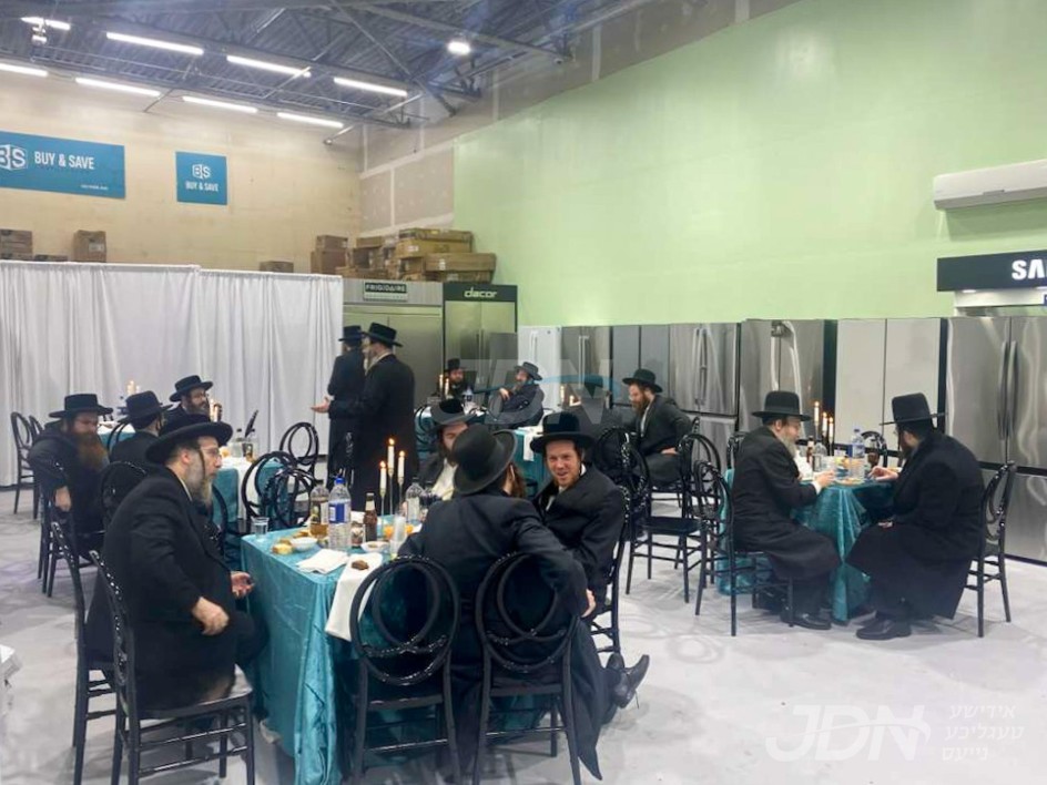 מסיבת צאתכם לכבוד האדמו"ר מראחוב אין די ביי ענד סעיוו עפלייענס געשעפט אין וויליאמסבורג