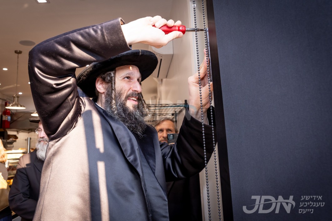 מעמד קביעת מזוזה בראשות רבני העיר פאר די נייע חידוש'פולע האלסעיל געשעפט מאטי'ס - מיטיב ווי אלעס ווערט פארקויפט האלסעיל פרייזן