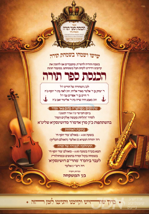 היינט קומט פאר די מעמד הכנסת ספר תורה וואס ווערט אריינגעגעבן צום ביהמ"ד מהרי"ם דושינסקיא אין שטאט אלעד, אין שפיץ פון כ"ק אדמו"ר מדושינסקיא שליט"א.