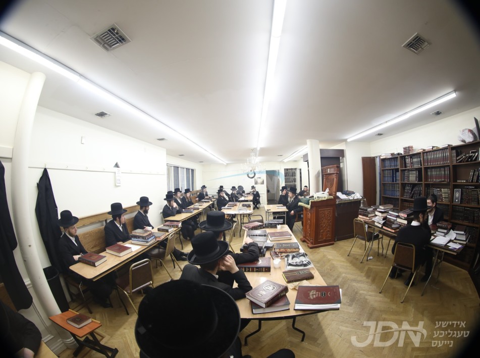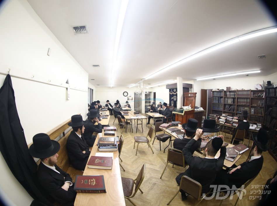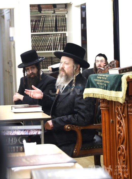 האדמו"ר מווערדאן פון ב"פ ביים איבערגעבן א שמועס פאר תלמידי ישיבה גבוהה סטוטשין