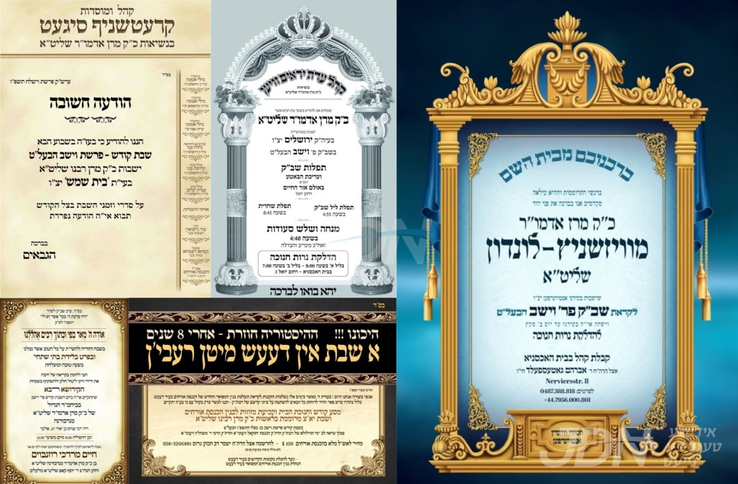 דעם שבת קומט פאר די שמחת הקידושא רבא פון א אייניקל ביי כ"ק אדמו"ר מנדבורנא אלעד שליט"א, איידעם ביי כ"ק אדמו"ר מחוסט שליט"א פון וומס"ב, א טאכטער פון זיין זון הרב חיים מרדכי ראזענבוים שליט"א, איידעם ביי הגה"צ ר' יוסף קאפף שליט"א מלעלוב בראנוביץ. – די שמחה קומט פאר אין נדבורנא ביהמ"ד אין אלעד.