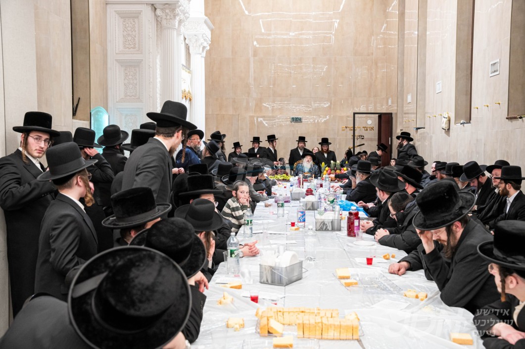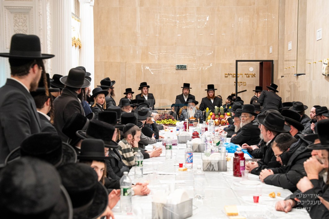 האדמו&quot;ר מוויזניץ פון לאנדאן ביים טיש ליל חמשה עשר בשבט אין מאנסי, אינאיינעם מיט א מסיבה לטובת מוסדות וויזניץ לאנדאן