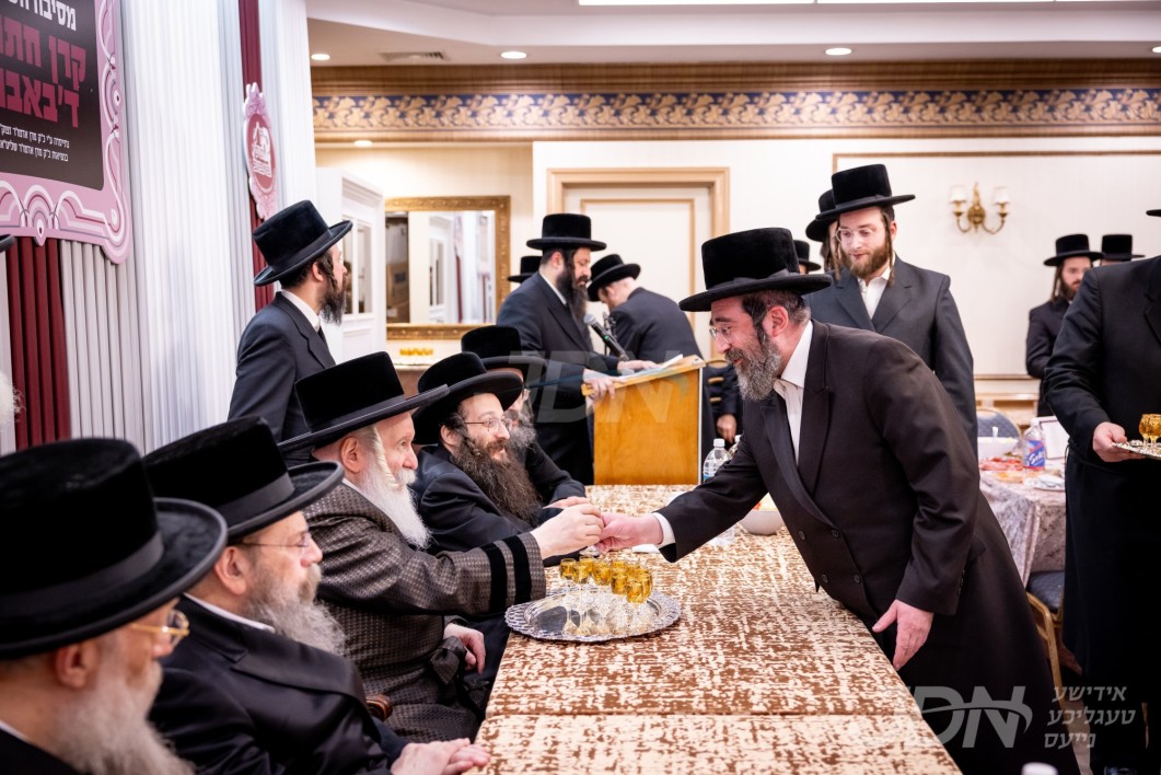 מסיבת צאתכם לכבוד האדמו&quot;ר מראחוב אין די ביי ענד סעיוו עפלייענס געשעפט אין וויליאמסבורג