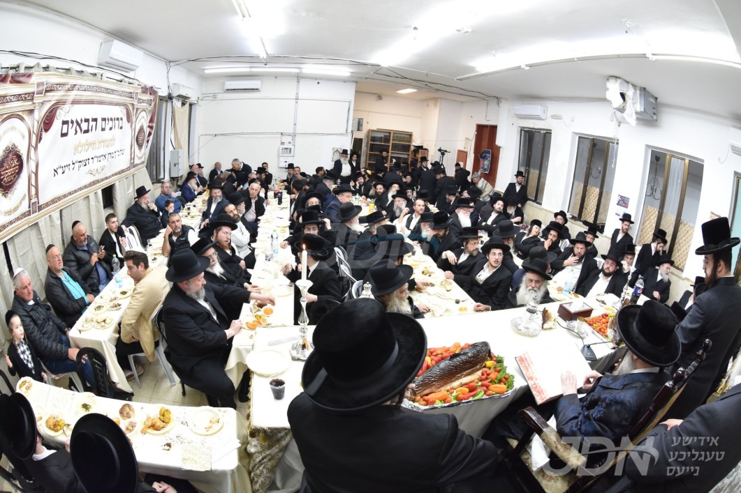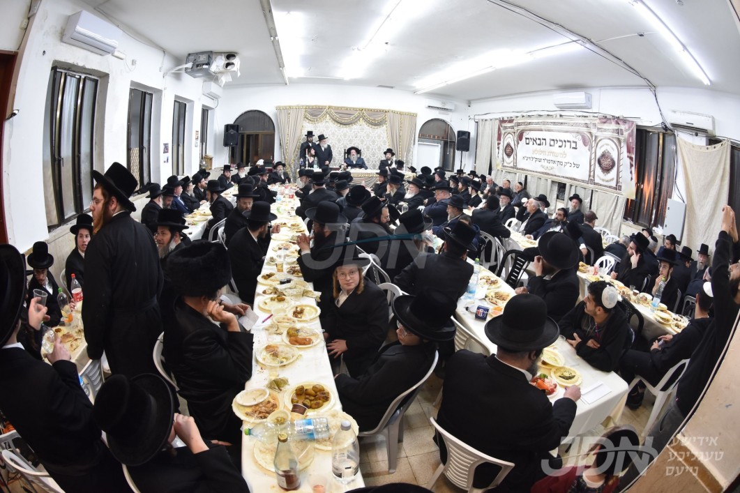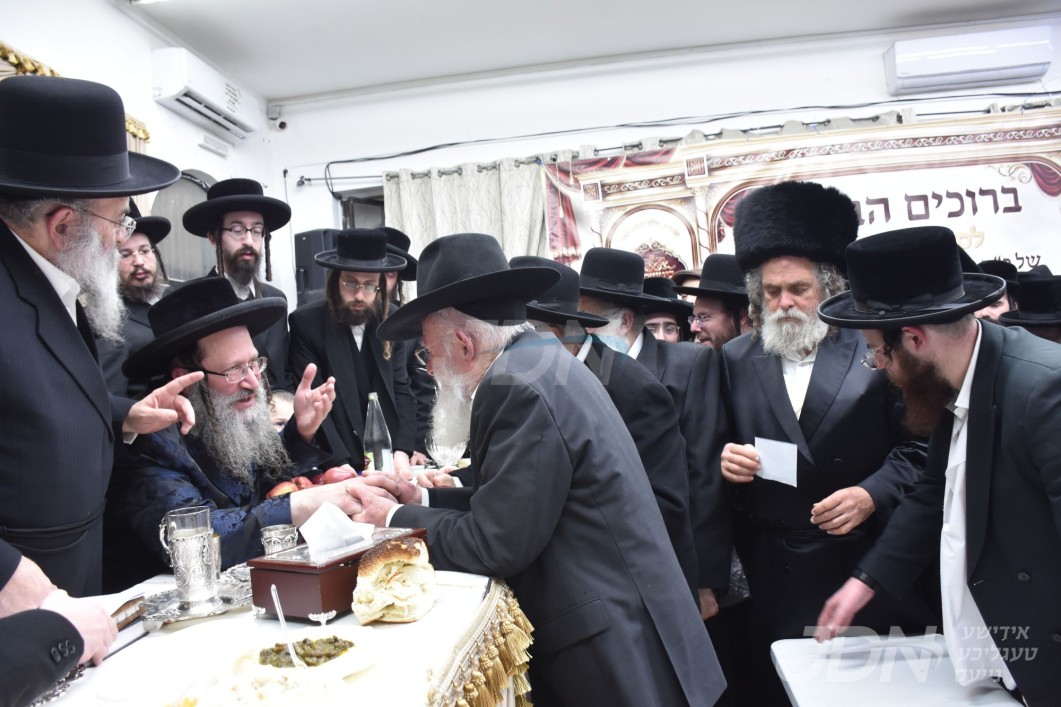 האדמו"ר מבאבוב באזוכט אין ישיבת כרם שלמה ד'באבוב צוזאמגענומען געלט וואס די בחורים האבן געשאפן בימי הפורים