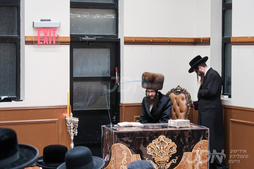 האדמו"ר ממאדזיץ ביי הדלקת נרות חנוכה אינאיינעם מיטן שמחת הבר מצוה פון אן אייניקל