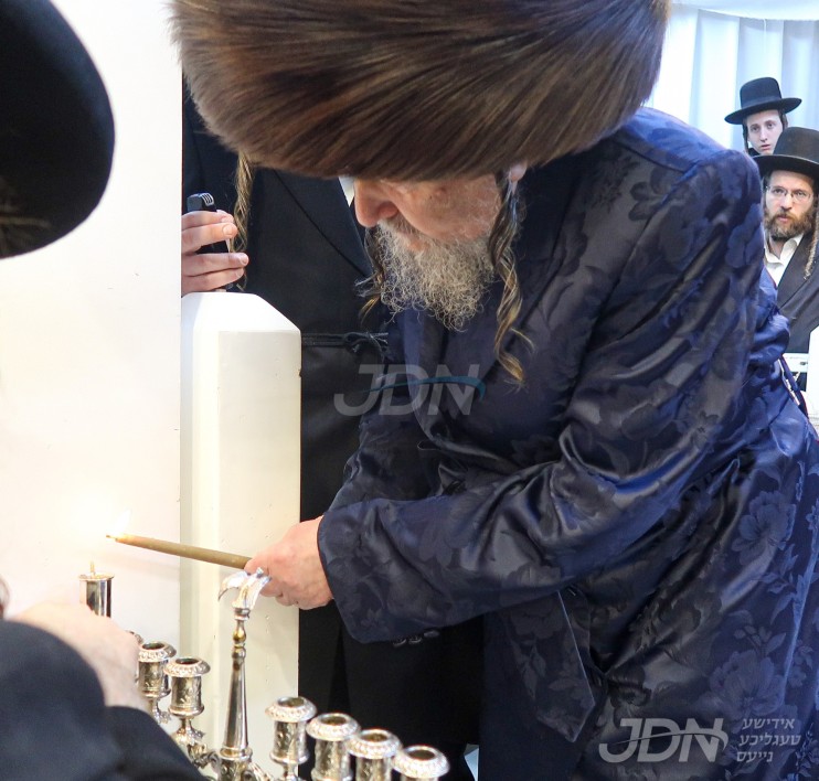 האדמו"ר מוואסלוי ביי הדלקת נרות חנוכה