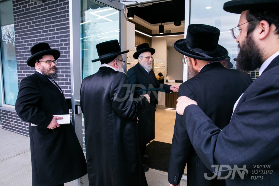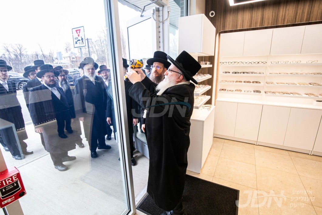 האדמו"ר מסאטמאר ביים קביעת מזוזה אין די נייע פראכטפולע העריטעדזש זילבער געשעפט אין די דאבעליו מאלל אין וויליאמסבורג