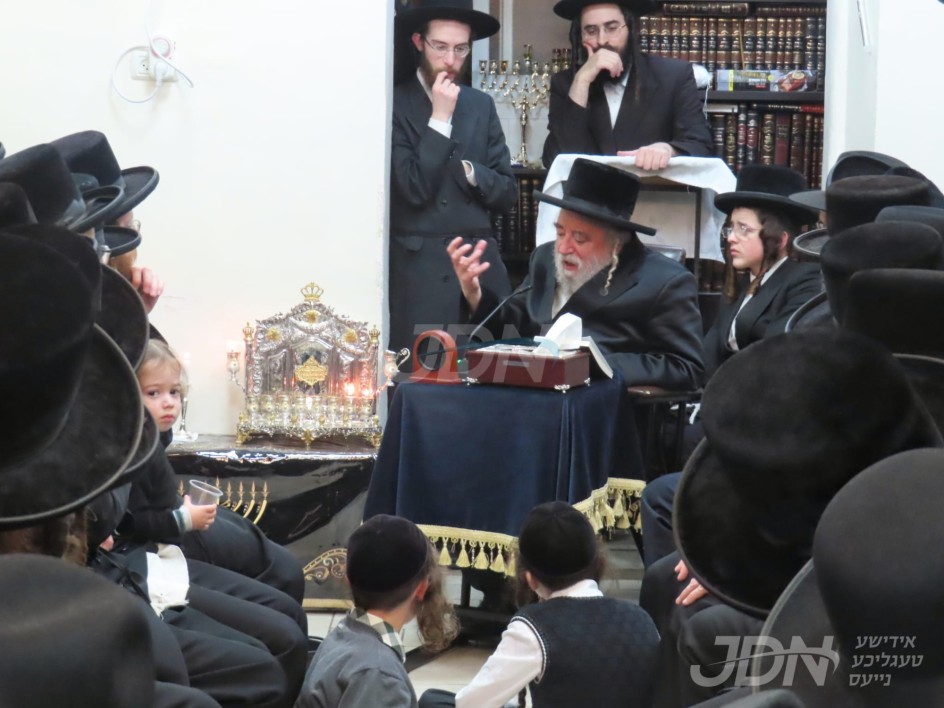 האדמו"ר מישועות יעקב סקולען ביי הדלקת נרות חנוכה