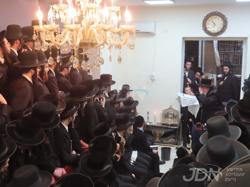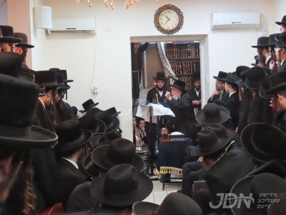האדמו"ר ממאדזיץ ביי הדלקת נרות חנוכה אינאיינעם מיטן שמחת הבר מצוה פון אן אייניקל