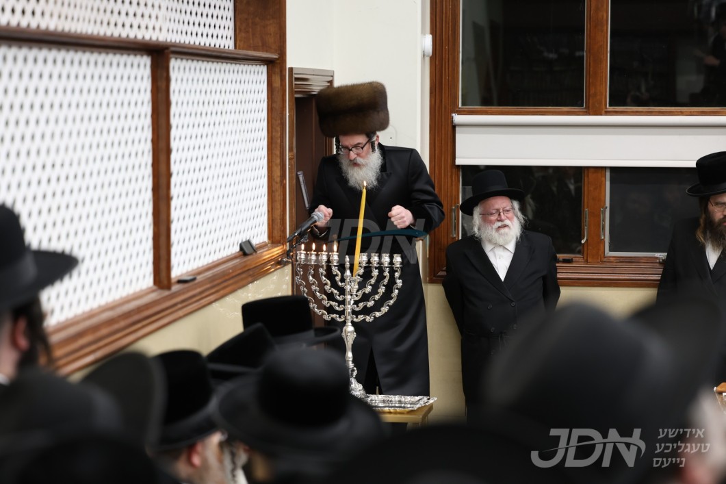 האדמו"ר מישועות יעקב סקולען ביי הדלקת נרות חנוכה