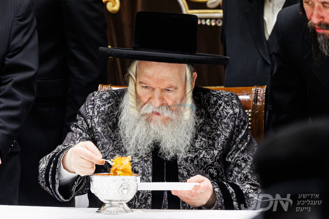 האדמו"ר מוויזניץ פון לאנדאן ביים טיש ליל חמשה עשר בשבט אין מאנסי, אינאיינעם מיט א מסיבה לטובת מוסדות וויזניץ לאנדאן