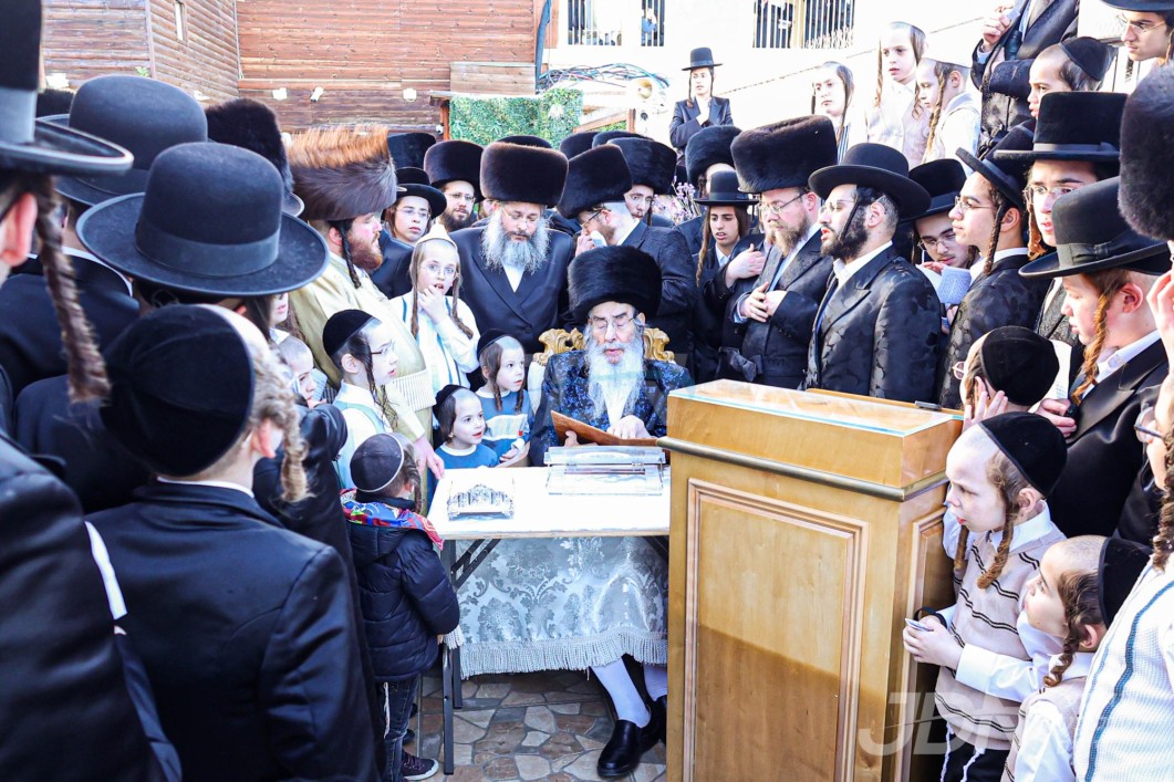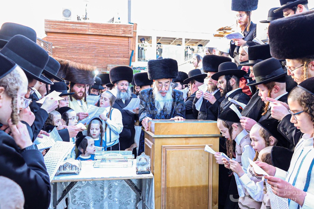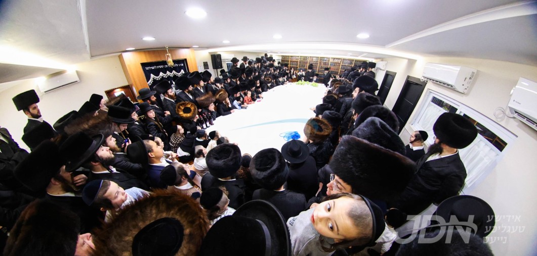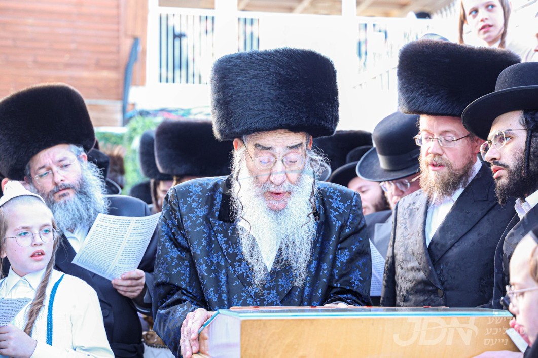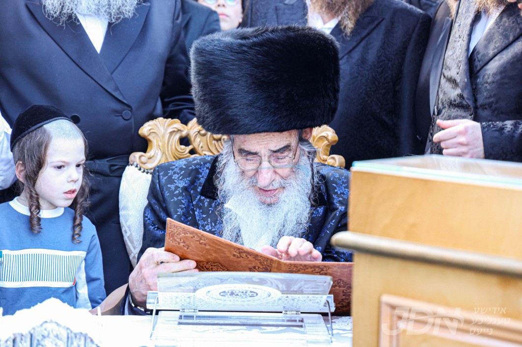 אלפי חסידי וויזניץ איבערראשט צום בעפארשטייענדן הכנסת ספר תורה דורך האדמו"ר מוויזניץ לרפו"ש