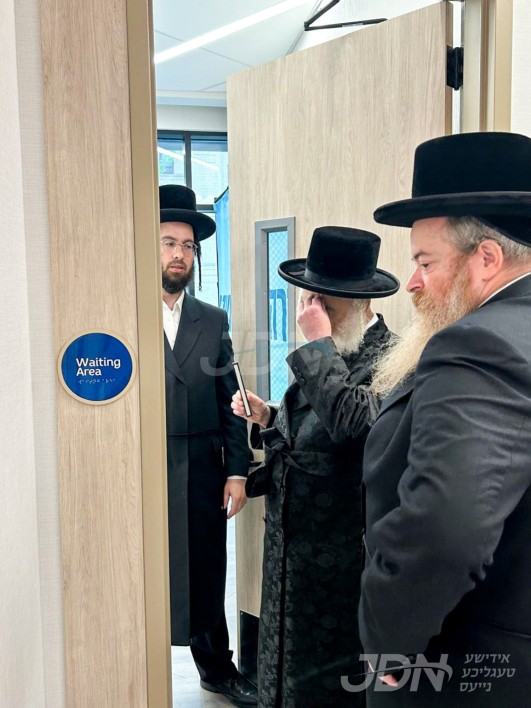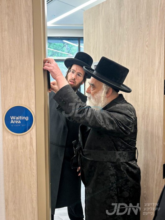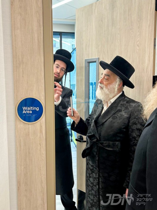 האדמו"ר מוויזניץ פון ירושלים ביים קביעת מזוזה אין די נייע לאקאציע פון עזרה מעדיקעל סענטער