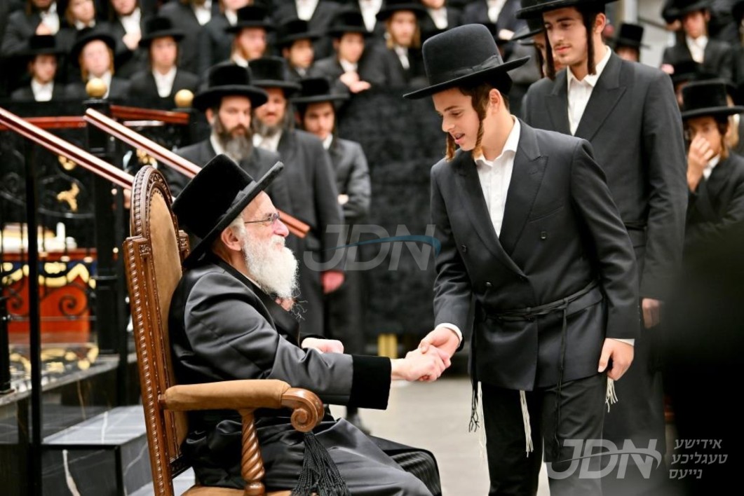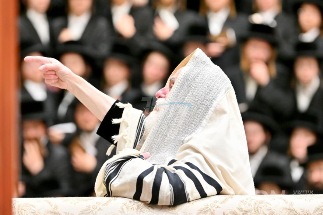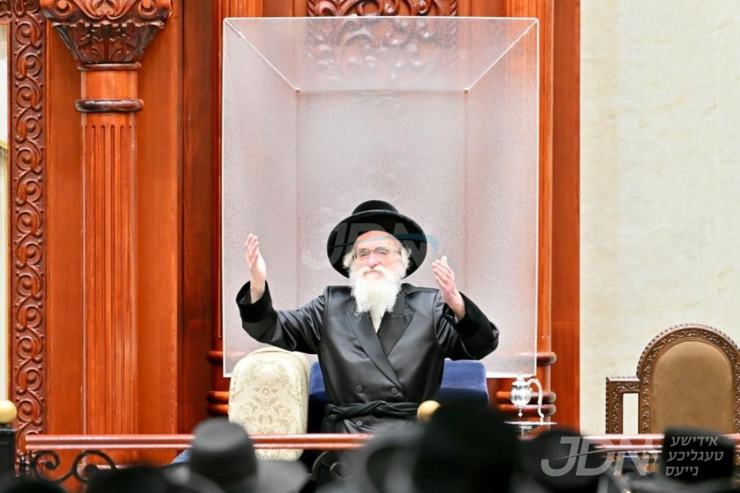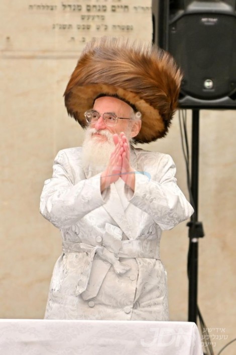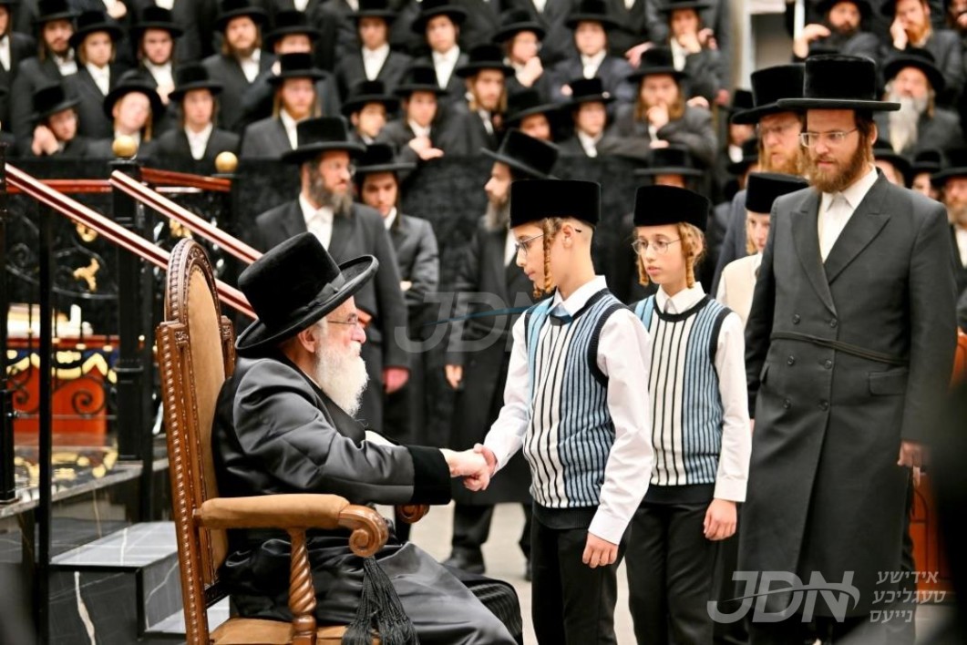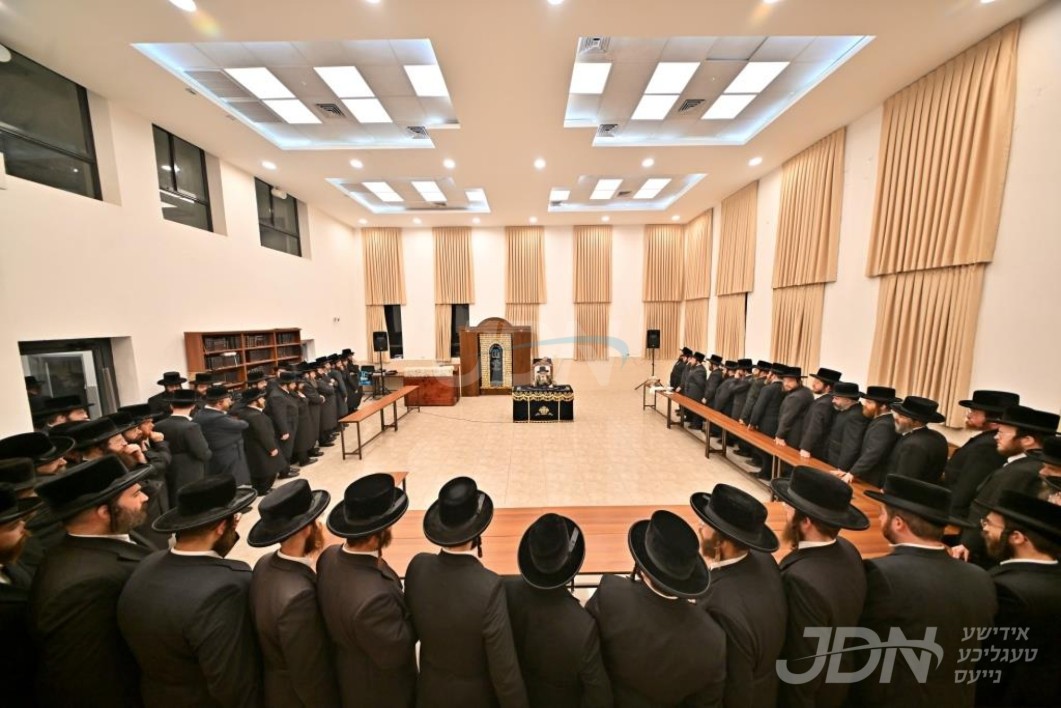 מעמד קביעת מזוזה פון ביהמ"ד החדש באבוב-45 און ראש השנה אין חצר הקודש באבוב-45