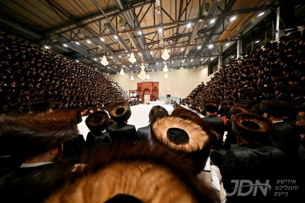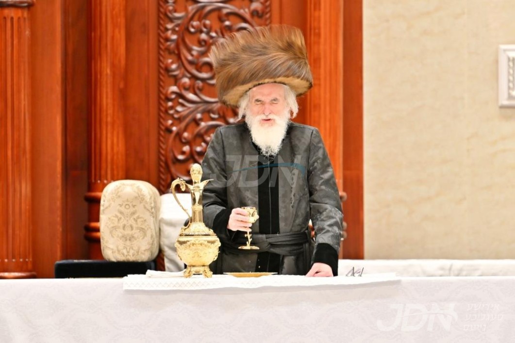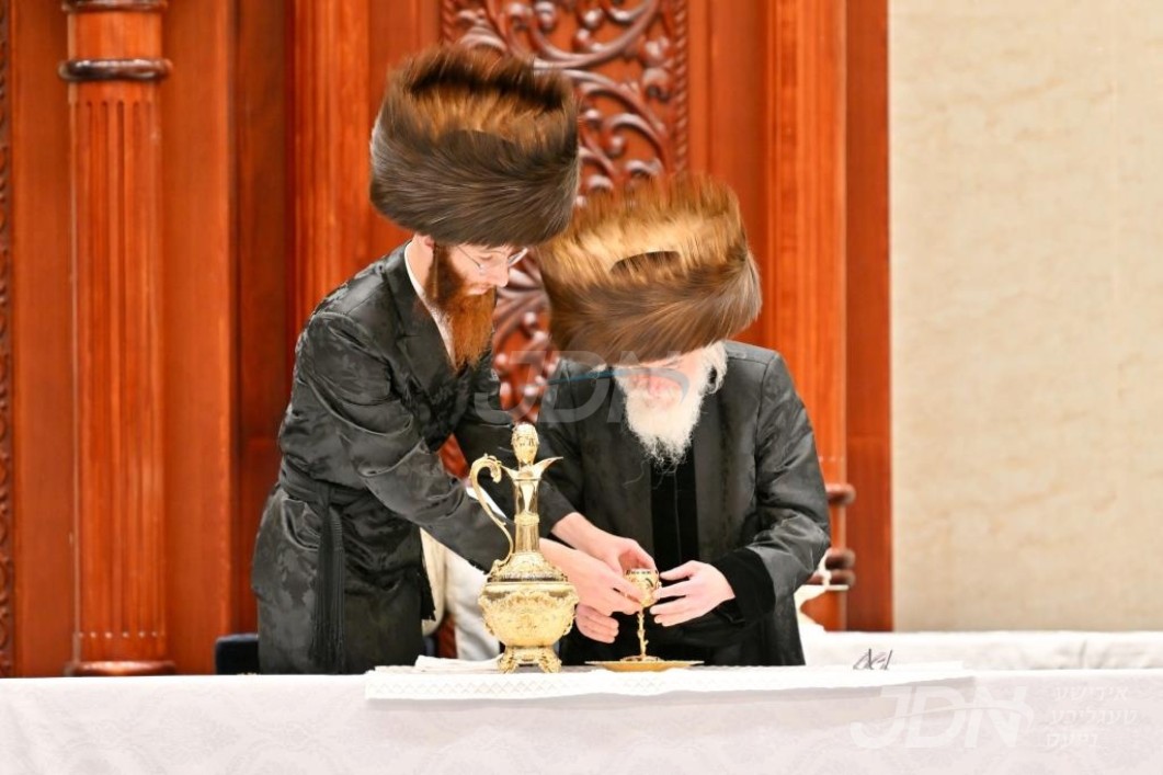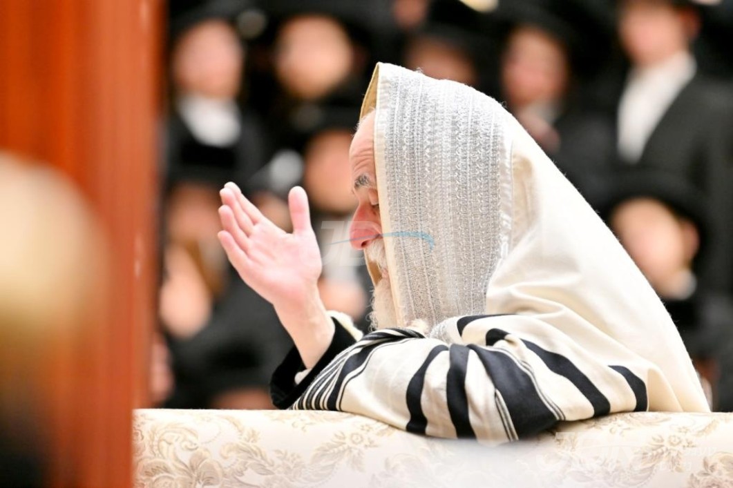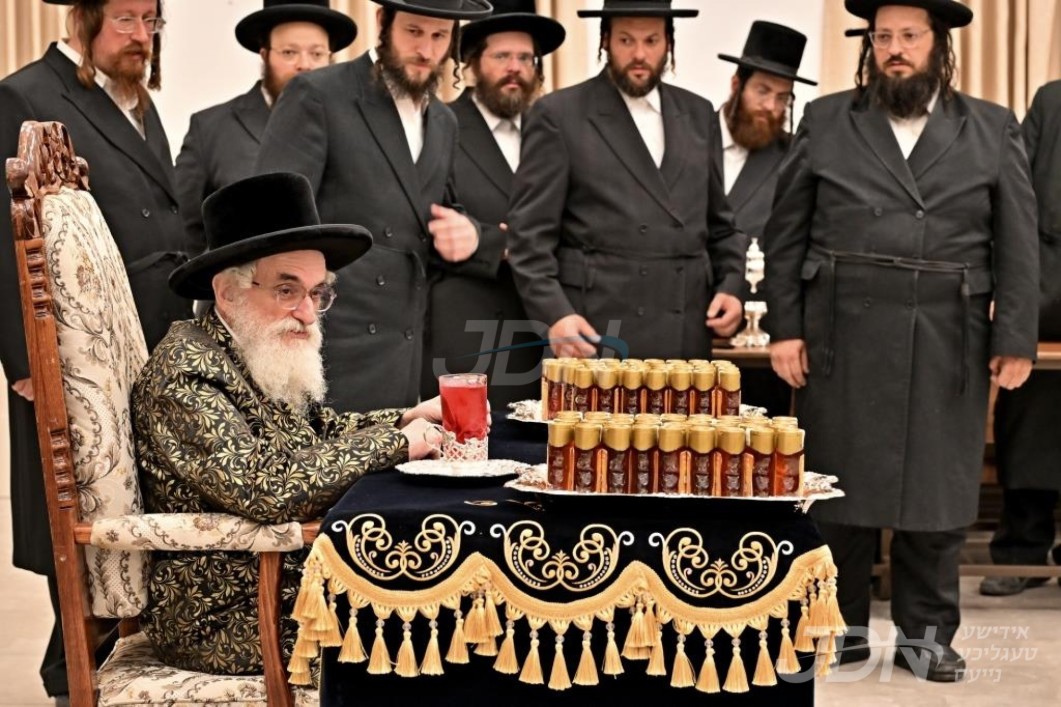 מעמד קביעת מזוזה פון ביהמ"ד החדש באבוב-45 און ראש השנה אין חצר הקודש באבוב-45