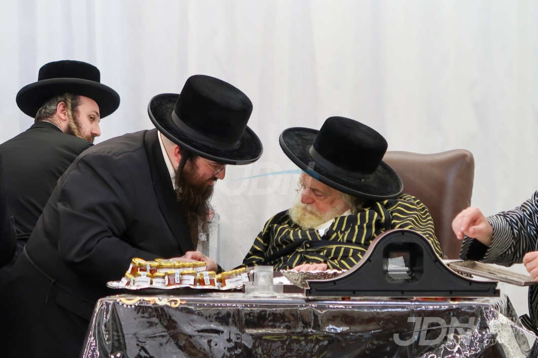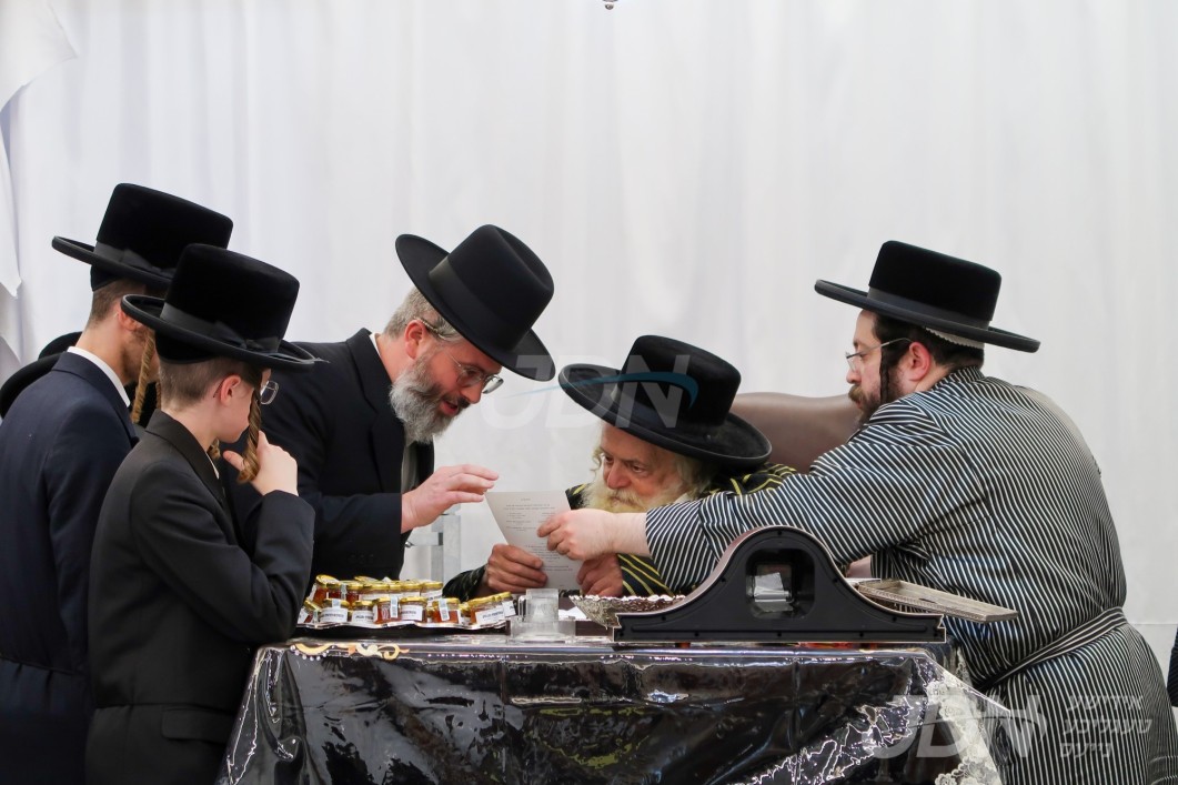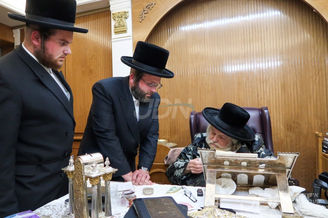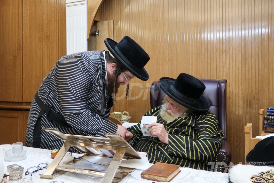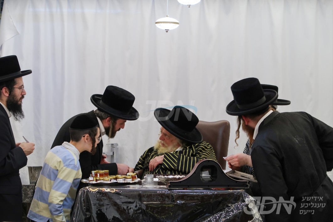 האדמו"ר מוויזניץ ביי קבלת קהל חסידיו בבית מדרשו אין מאנסי