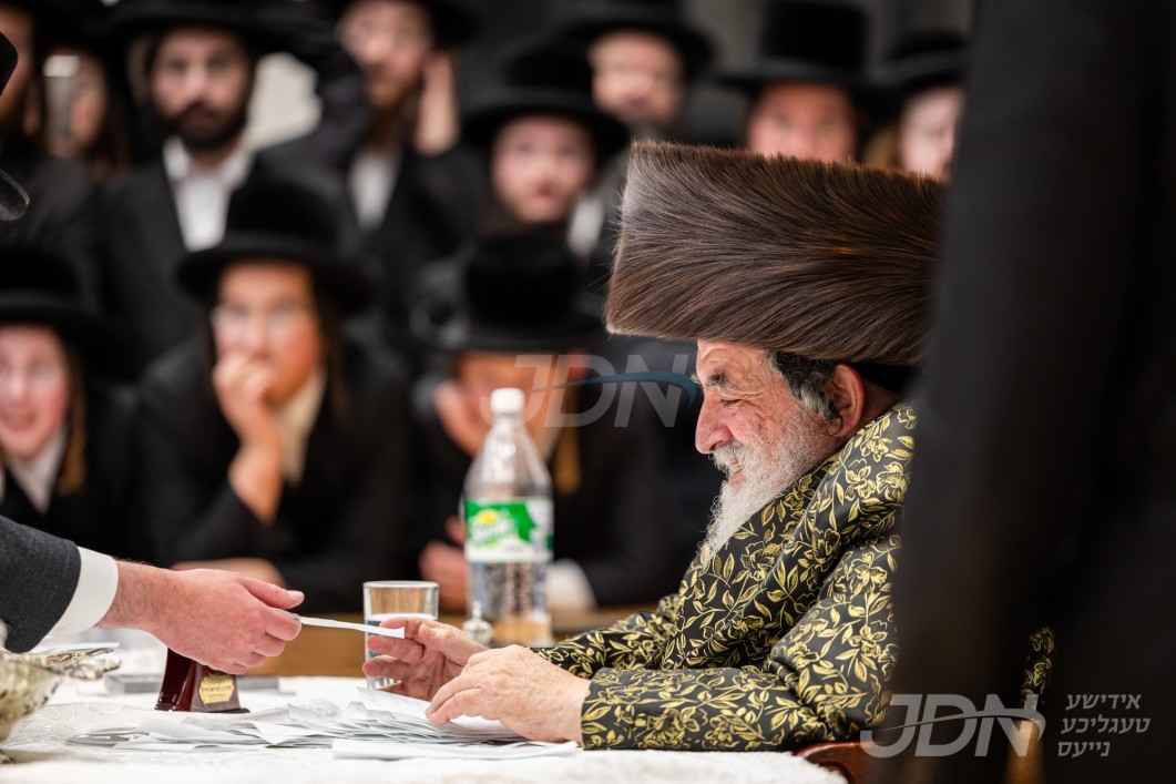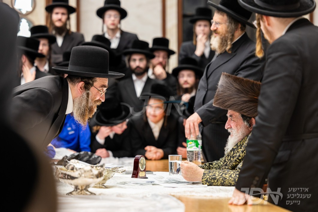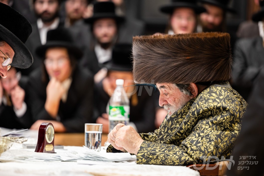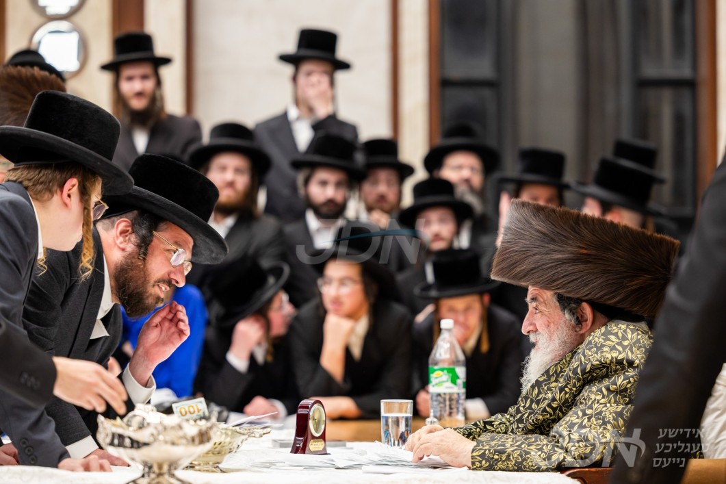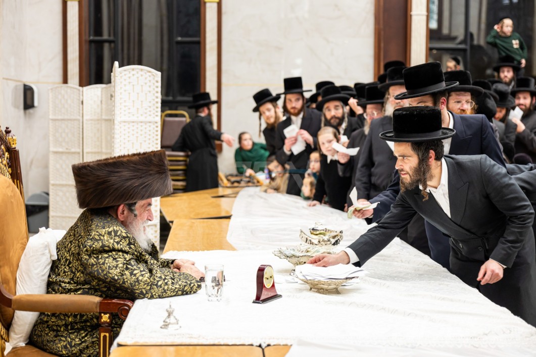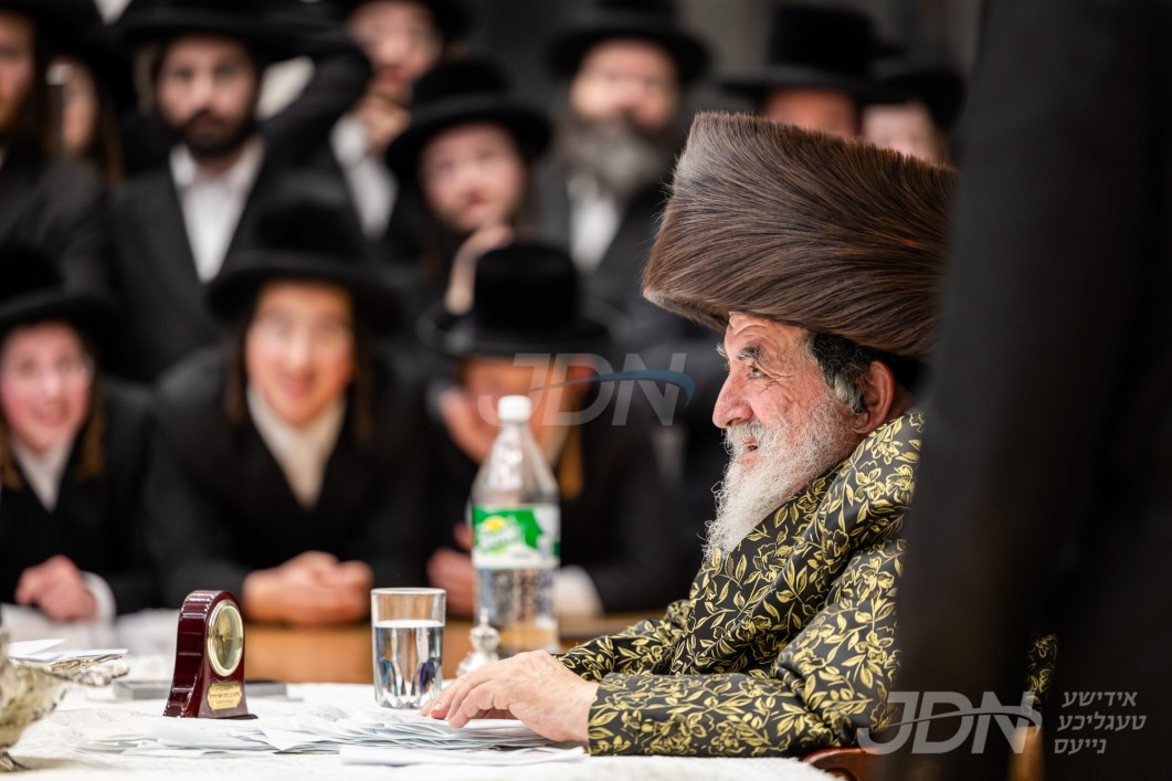 האדמו"ר מוויזניץ ביי קבלת קהל חסידיו בבית מדרשו אין מאנסי