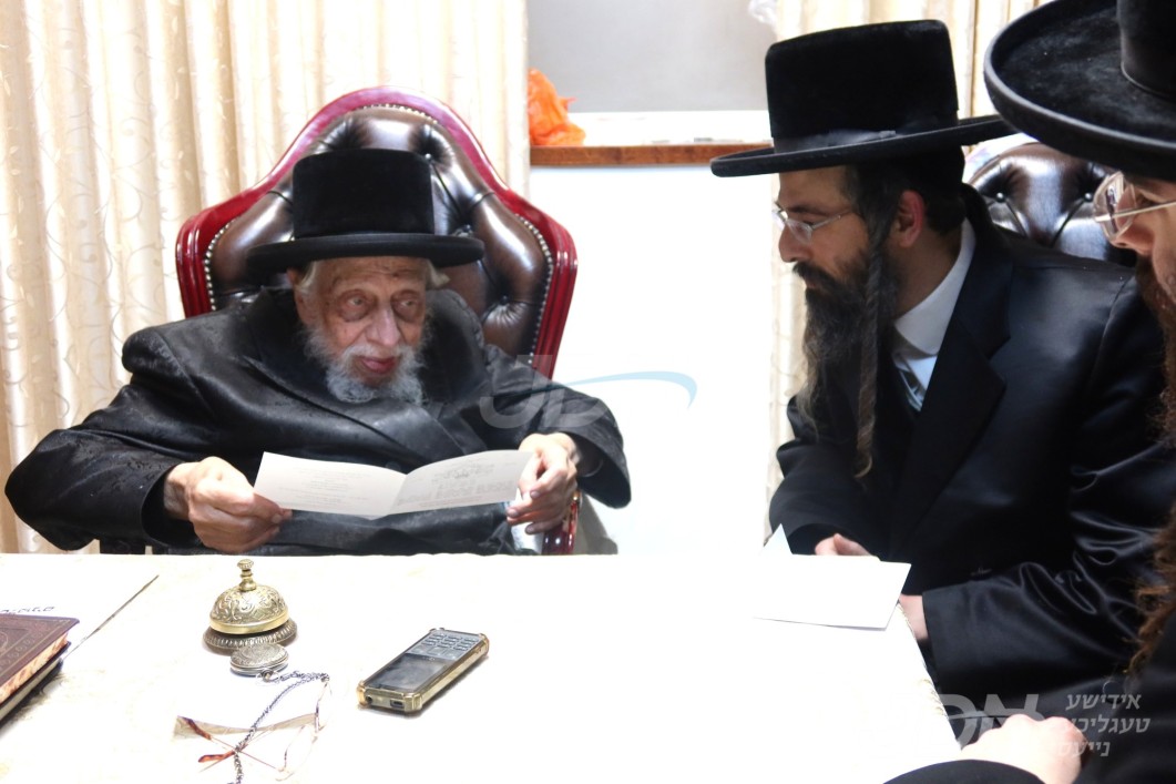 האדמו"ר מזוועהיל באזוכט ביי גדולי ישראל לקראת די שמחת החתונה פון בנו
