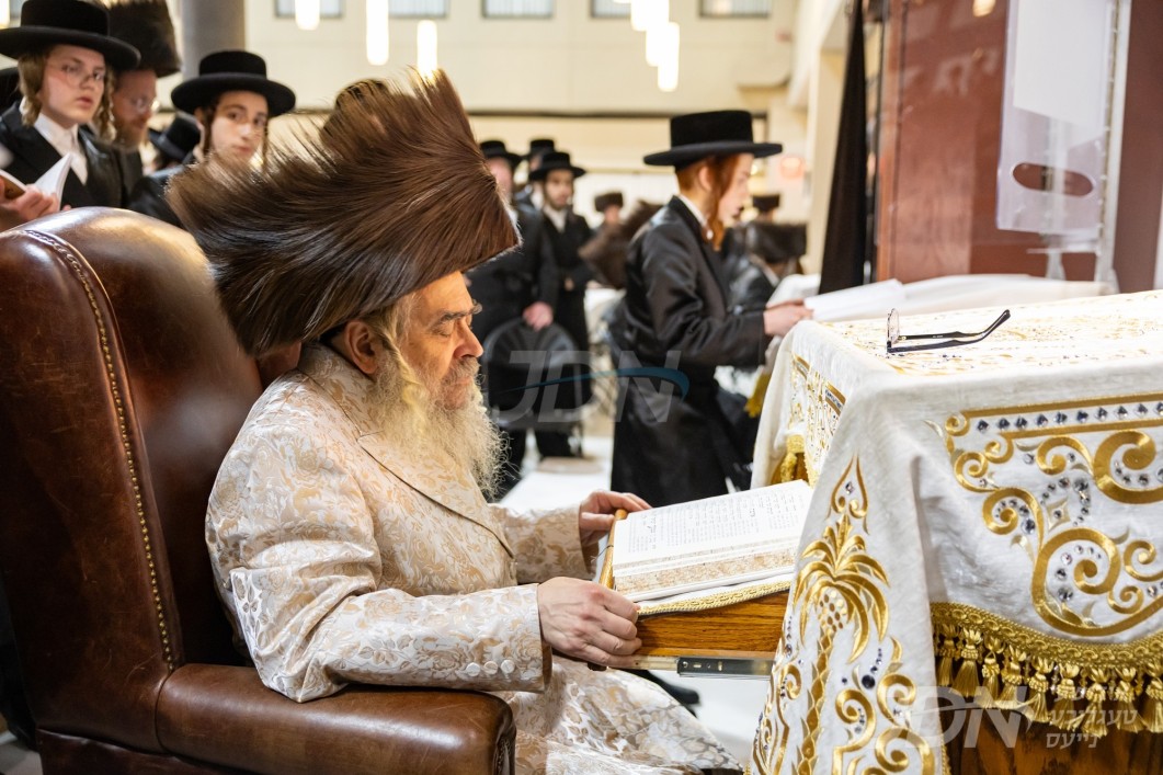 האדמו"ר מסערט וויזניץ שב"ק אין בארא פארק בבית מדרשו פון חתנו האדמו"ר מקאסוב