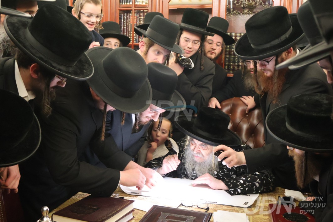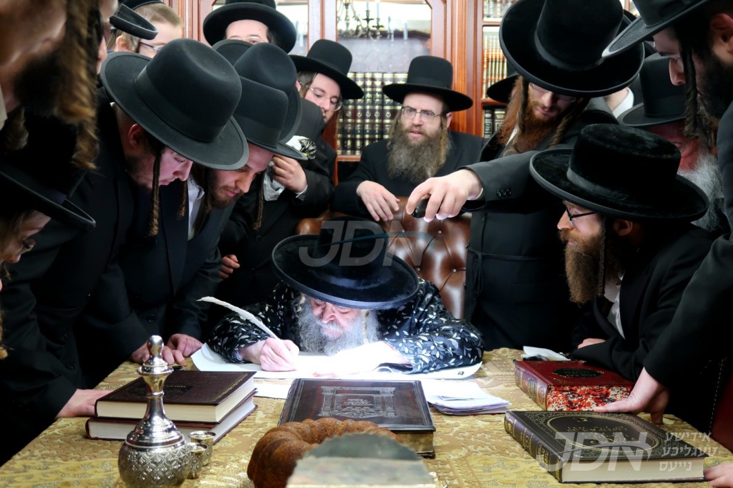 אדמו&quot;רים און רבנים ביים כתיבת אותיות פארן ס&quot;ת וואס וועט ווערן אריינגעגעבן צו ביהמ&quot;ד דאמבראווא קומענדיגן יו&quot;ט שבועות הבעל&quot;ט‎