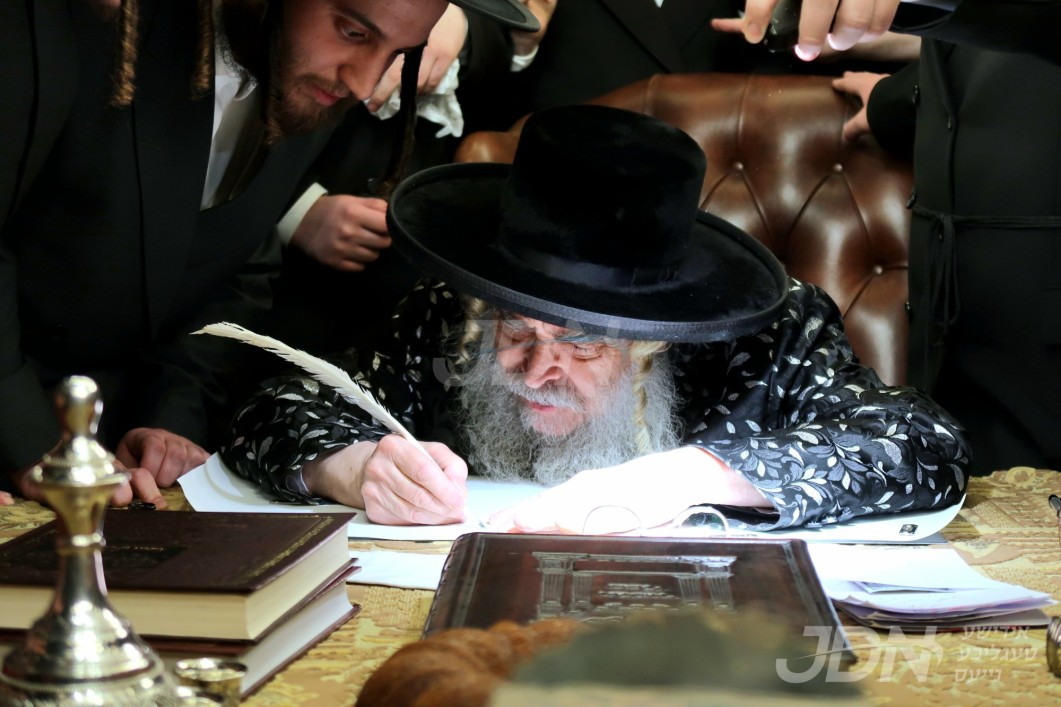 האדמו"ר מבעלזא ביים כתיבת אותיות פארן ס"ת וואס ווערט געשריבן דורך תושבי ישוב ענתות