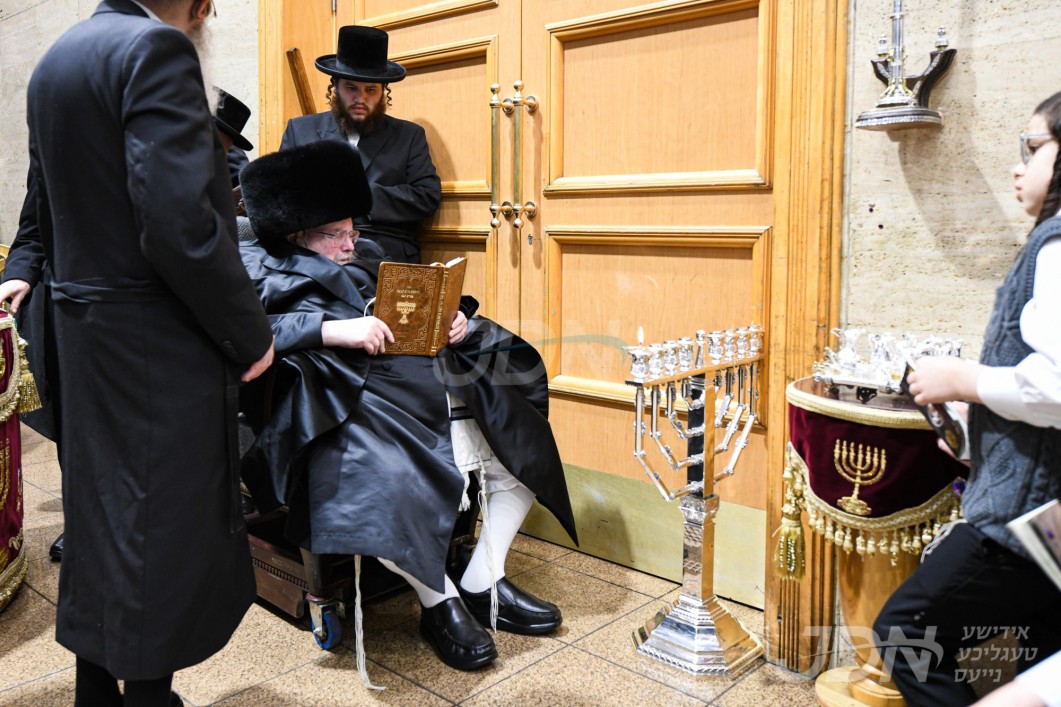 האדמו"ר מוואסלוי ביי הדלקת נרות חנוכה