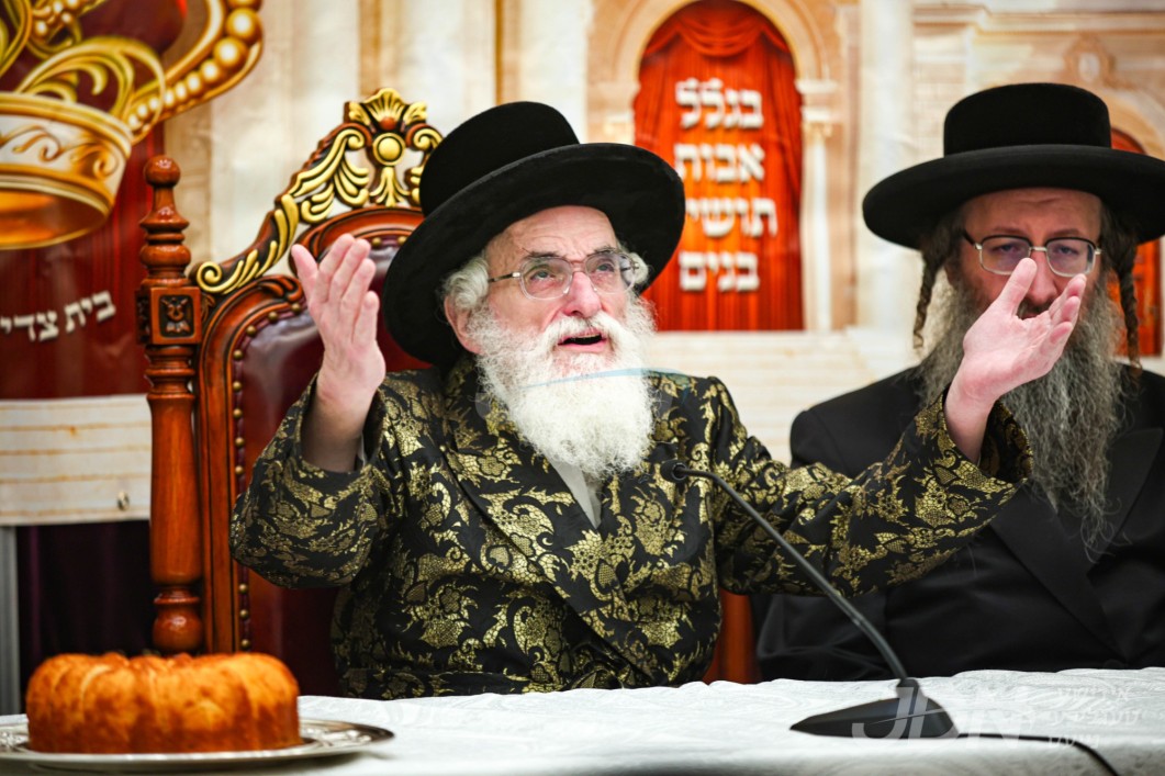 האדמו"ר מוויזניץ ביים מסיבת לחיים אין ביהמ"ד וויזניץ אין בארא פארק לרגל די געבורטס פון אן אור אייניקל