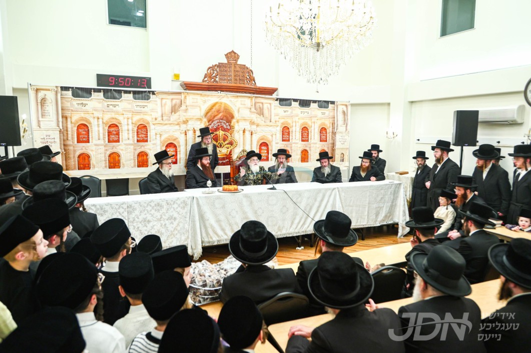 מסיבת לחיים אין שטוב פון הרה"ח ר' משה פריעדמאן הי"ו משבק אדמו"רי סאטמאר לרגל קנין זכות שם הבנין פון תלמוד תורה סאטמאר אין בארא פארק