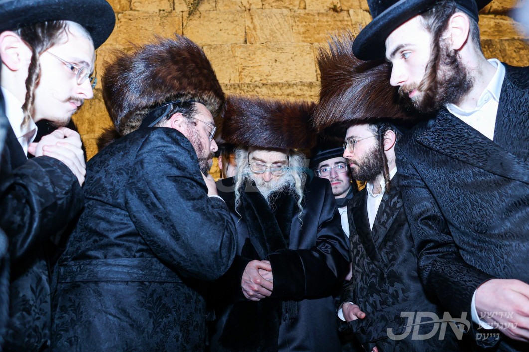האדמו&quot;ר מוויזניץ איז מתפלל ביים כותל המערבי