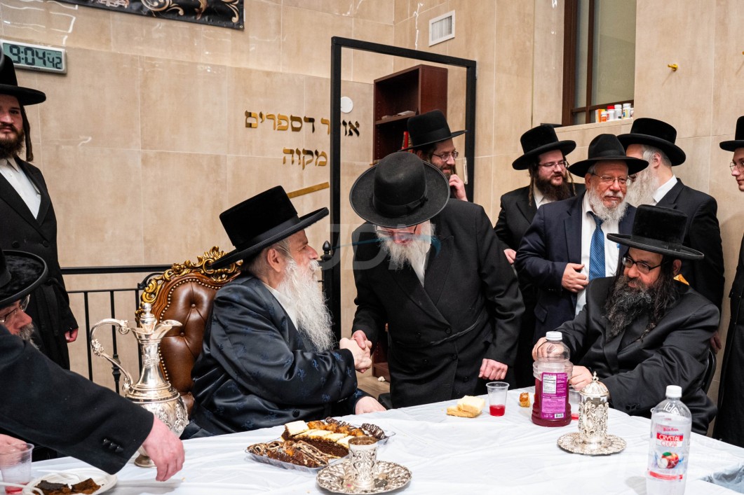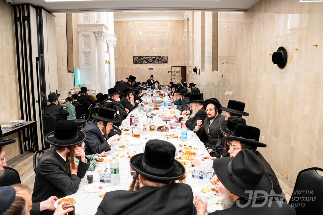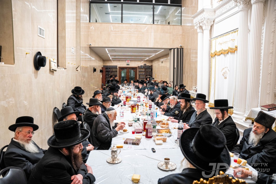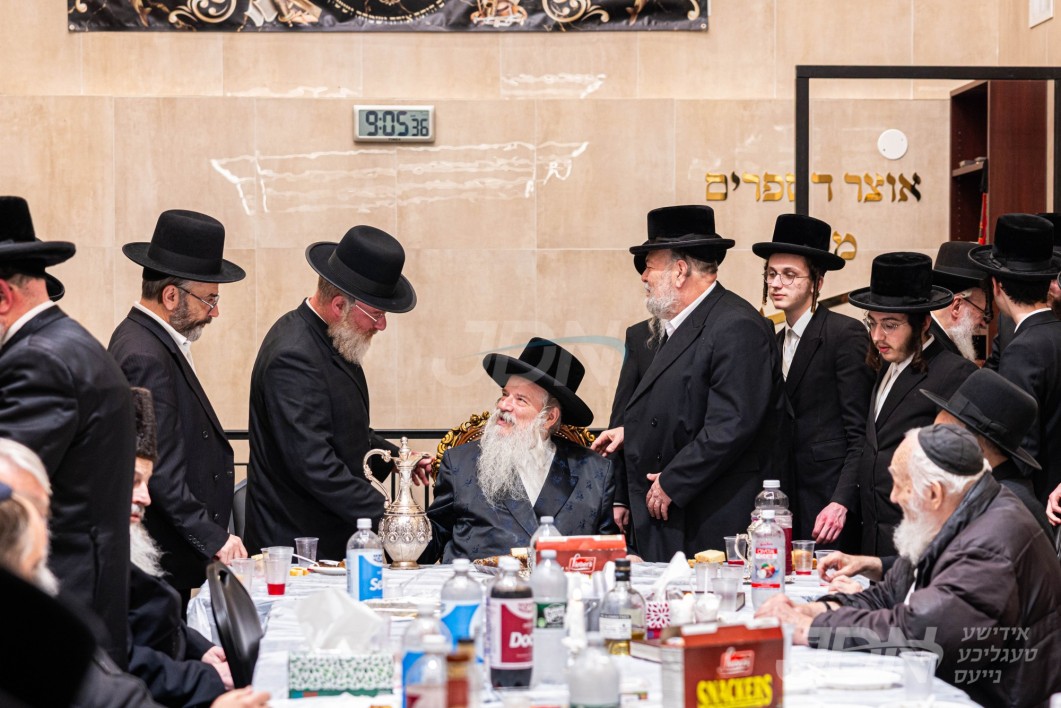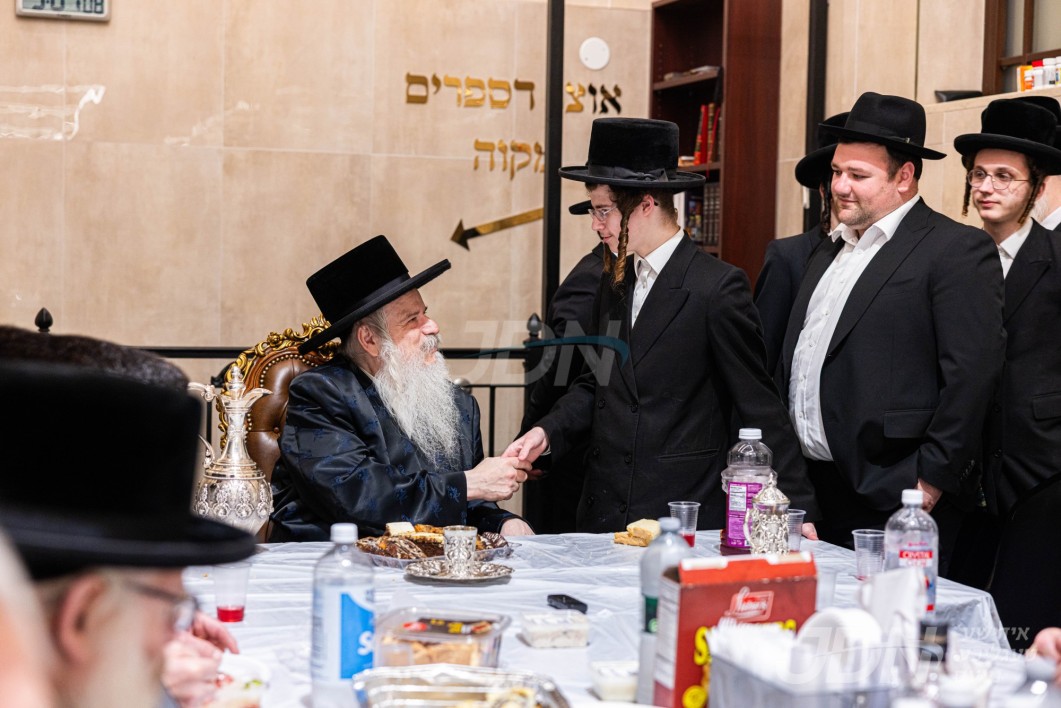 האדמו&quot;ר מסאטמאר ביים מסיבת לחיים לרגל די יארצייט פון הייליגן רבי ר&#039; אלימלך מליזענסק זי&quot;ע מיט תלמידי ישיבה קטנה סאטמאר מאנסי סניף קנין תורה‎