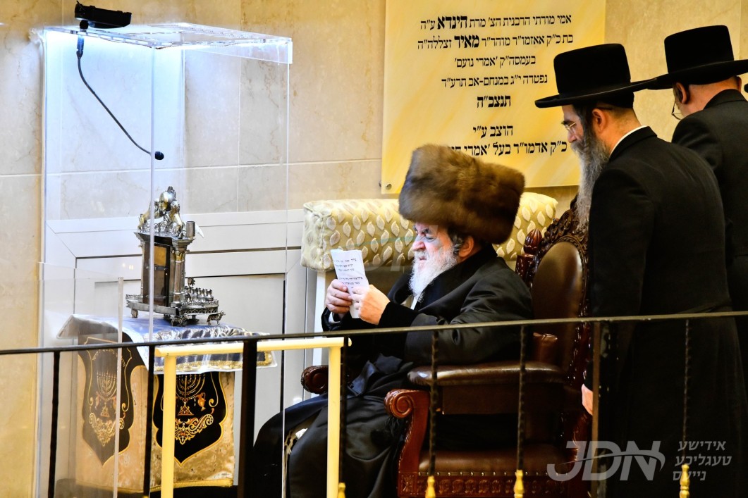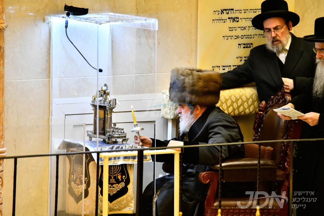 האדמו"ר מצאנז ביי הדלקת נרות חנוכה