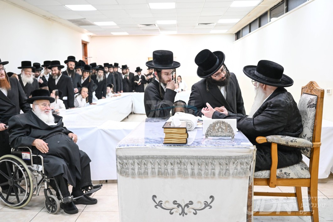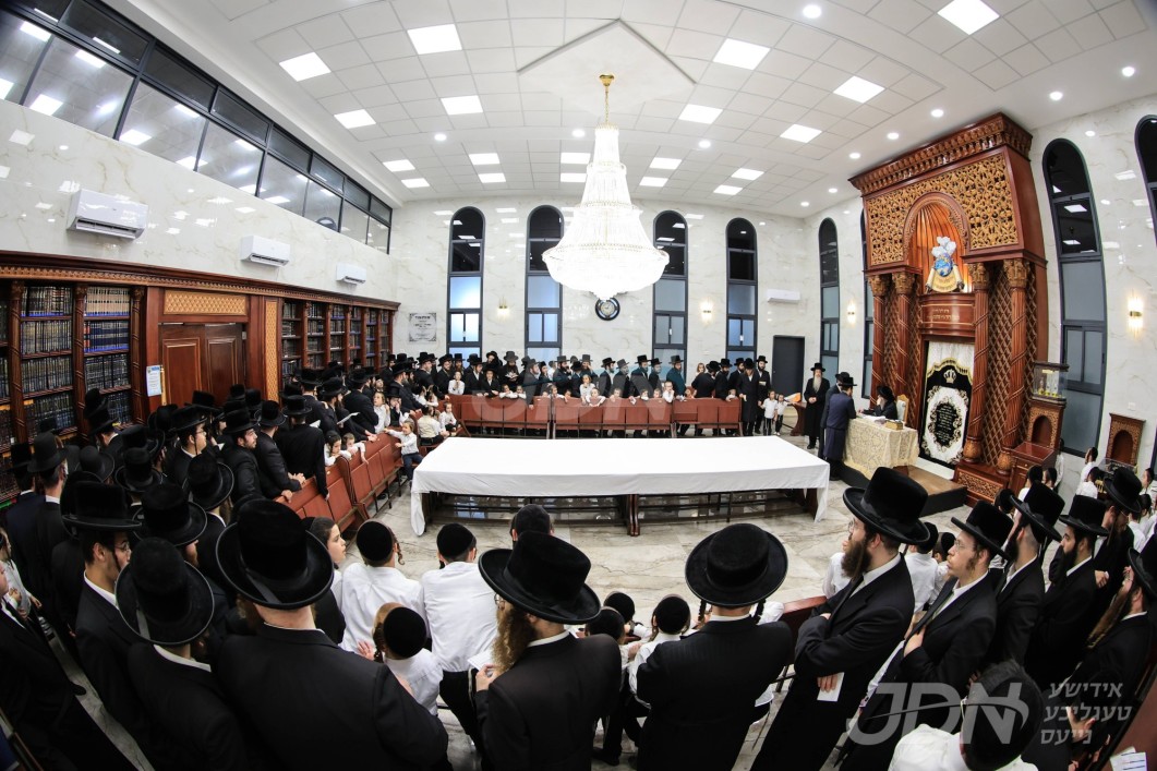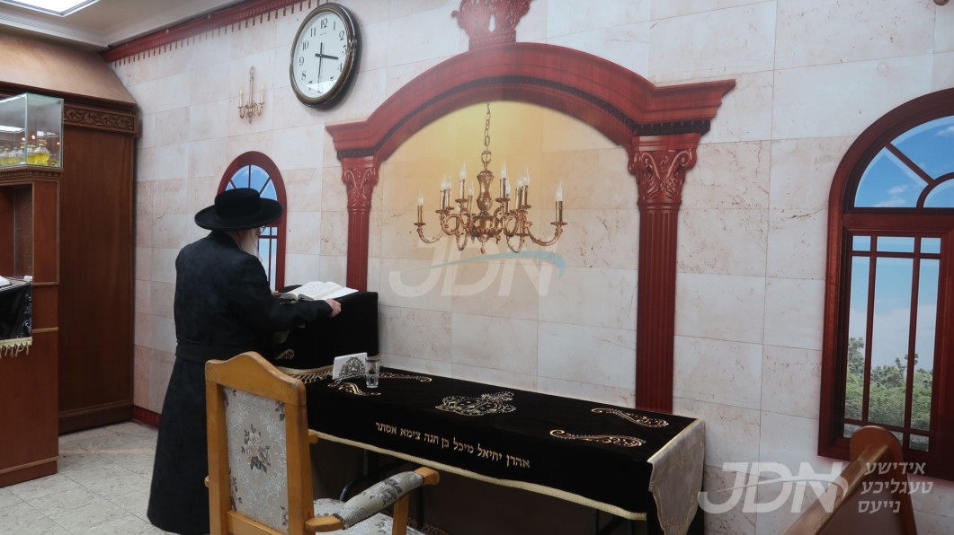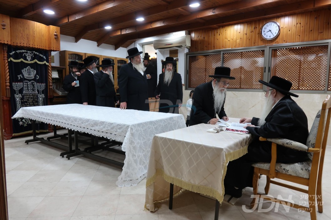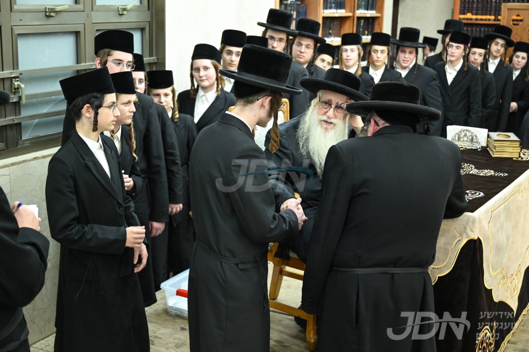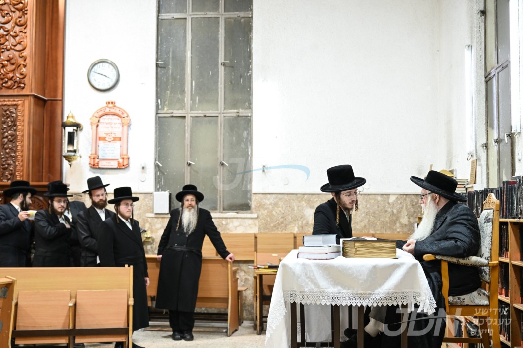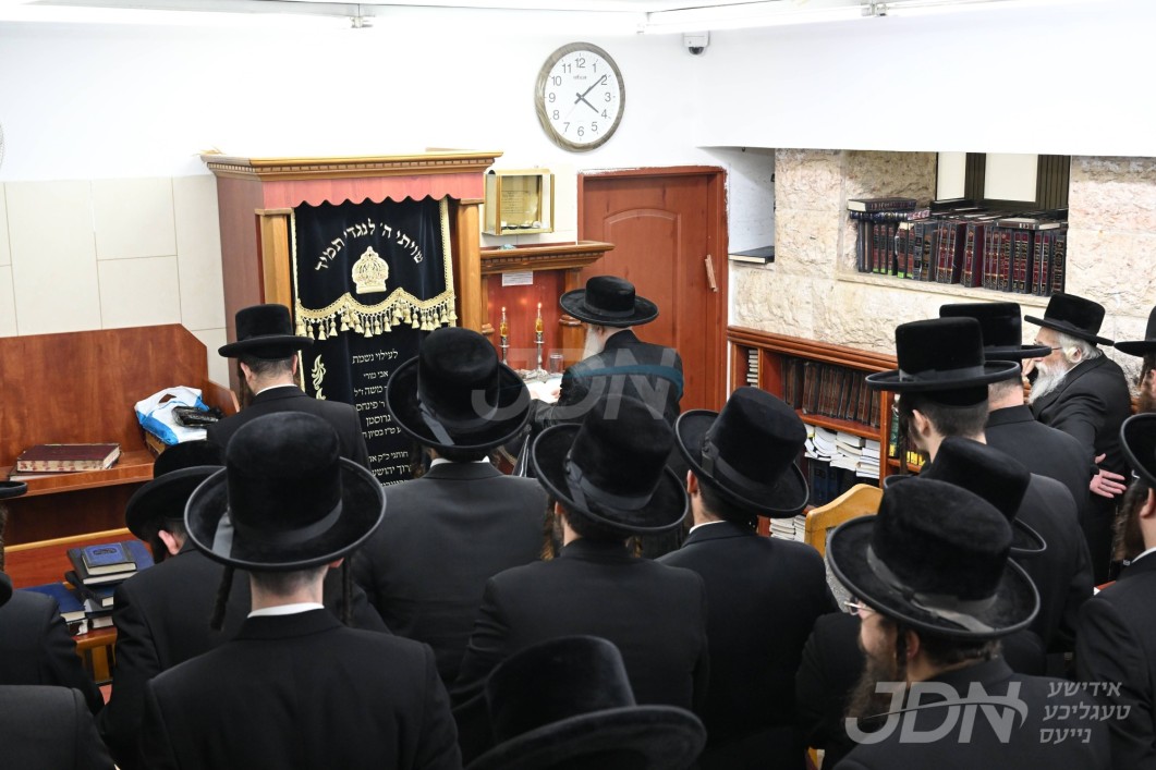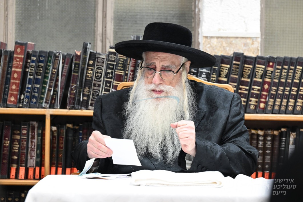האדמו"ר מוויזניץ ביי קבלת קהל חסידיו בבית מדרשו אין מאנסי