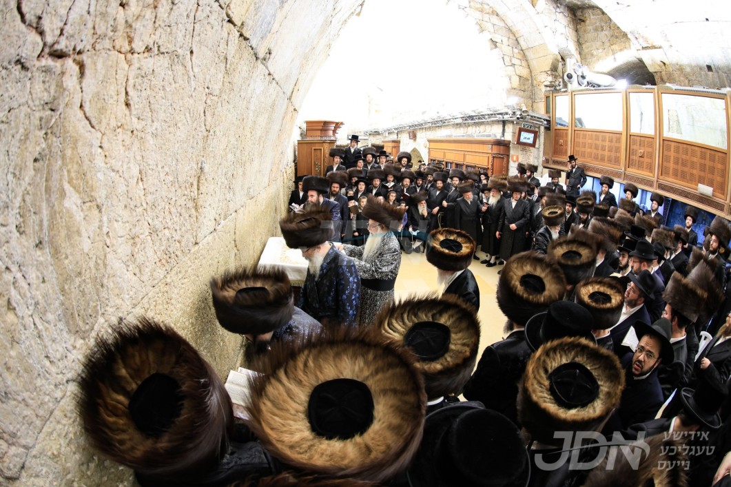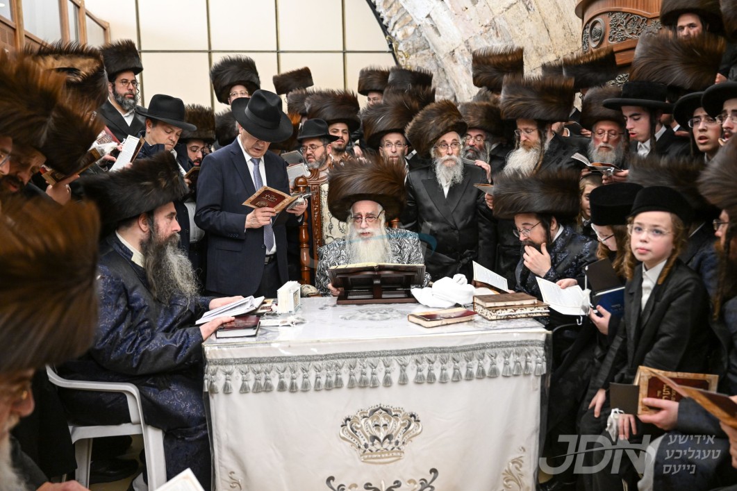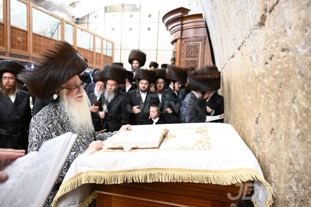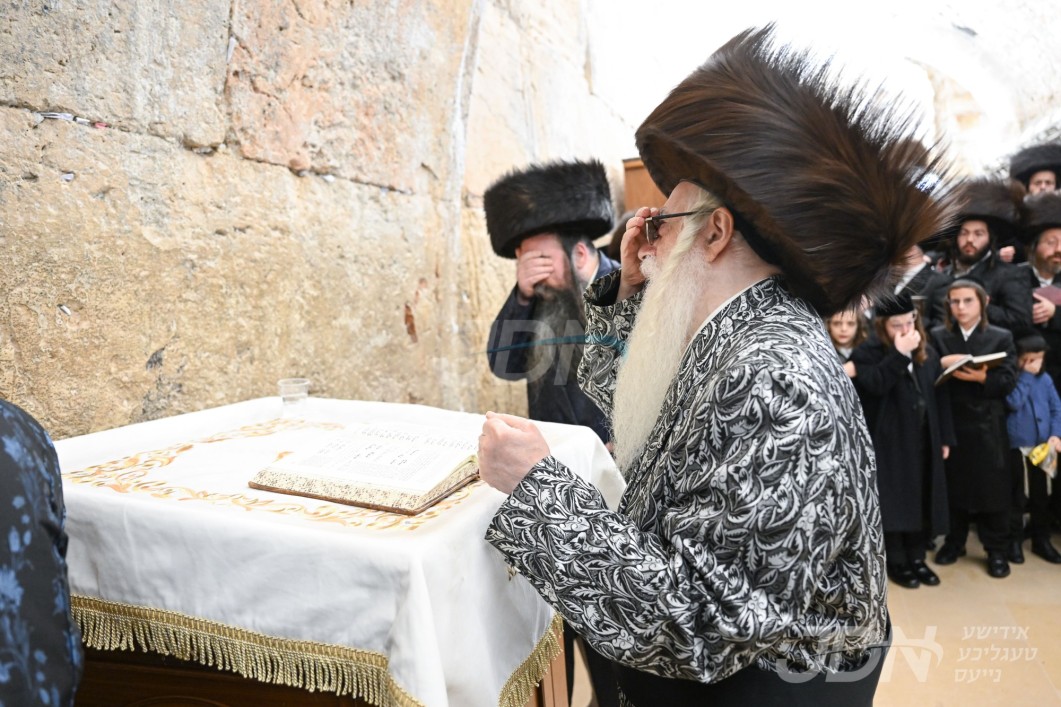 האדמו"ר מצאנז שבת קודש ביים כותל המערבי מיט תומכי המוסדות