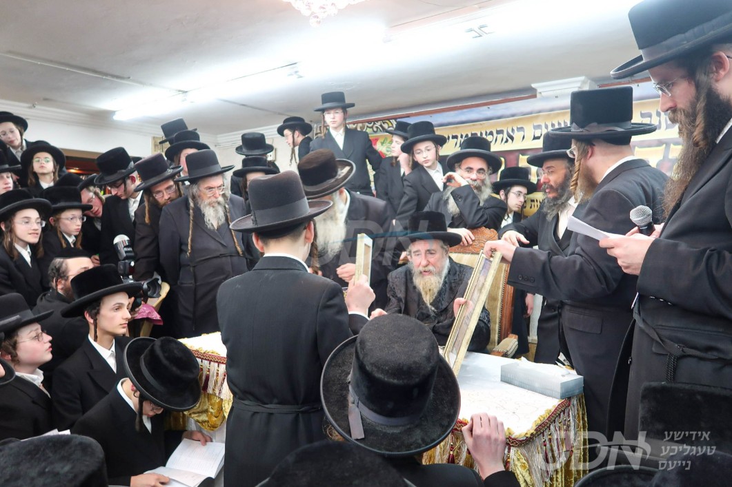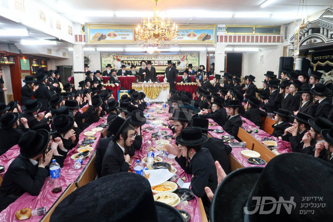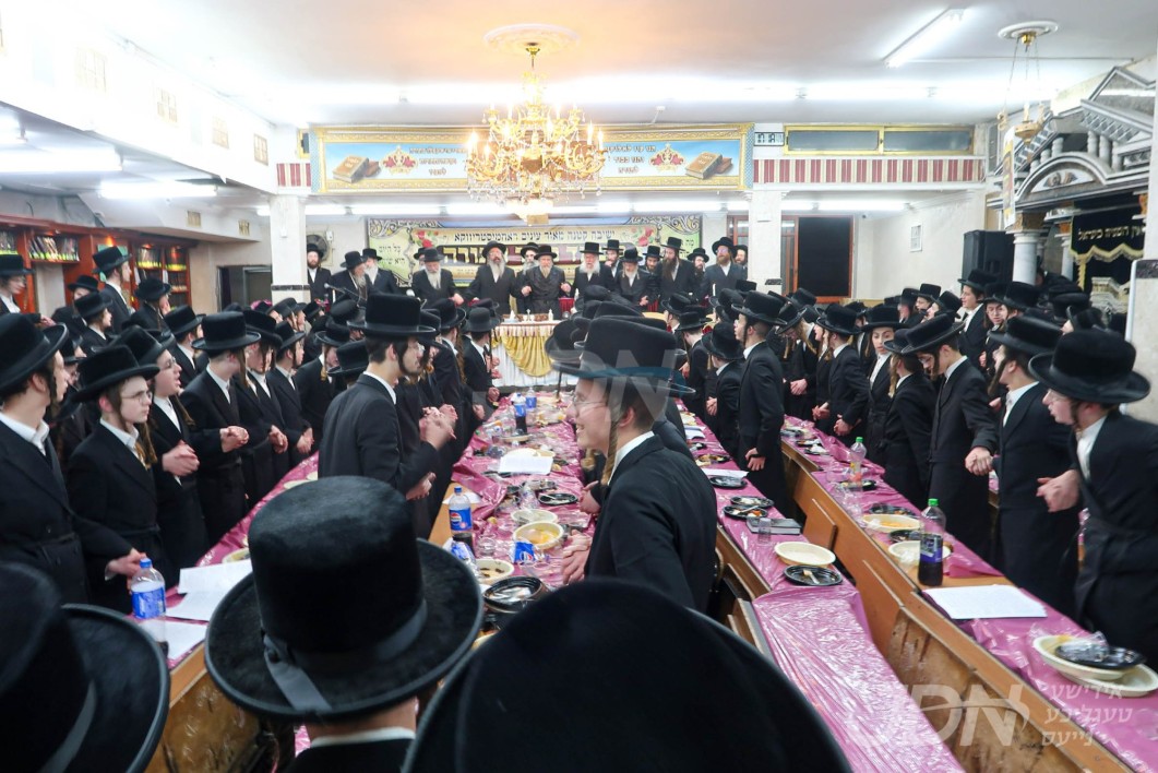 האדמו&quot;ר מסאטמאר ביים מסיבת לחיים לרגל די יארצייט פון הייליגן רבי ר&#039; אלימלך מליזענסק זי&quot;ע מיט תלמידי ישיבה קטנה סאטמאר מאנסי סניף קנין תורה‎