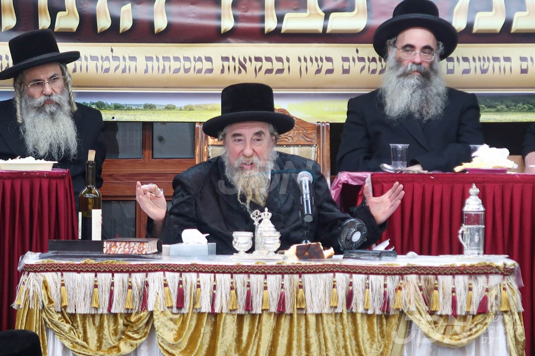 האדמו&quot;ר מסאטמאר ביי די סוגיא שיעורים אין היכל הישיבה הכנה צום דרשת שבת הגדול‎