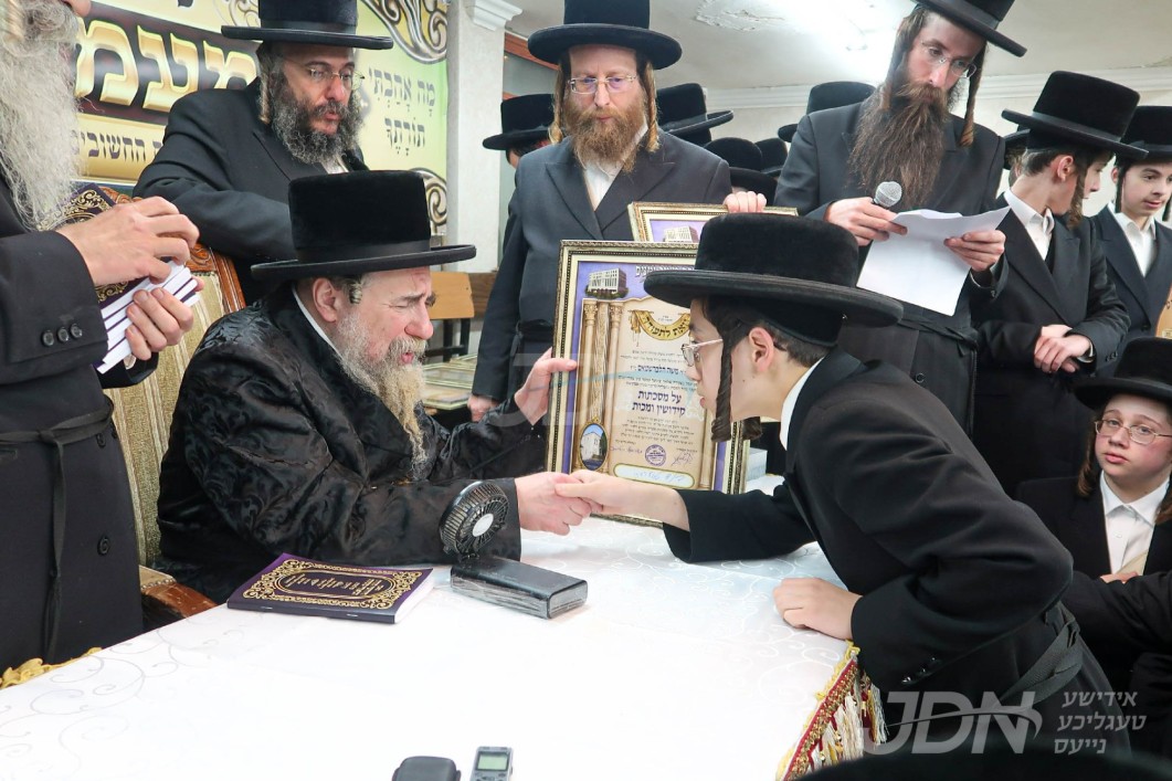 האדמו"ר מסאטמאר ביים מסיבת לחיים לרגל די יארצייט פון הייליגן רבי ר' אלימלך מליזענסק זי"ע מיט תלמידי ישיבה קטנה סאטמאר מאנסי סניף קנין תורה‎