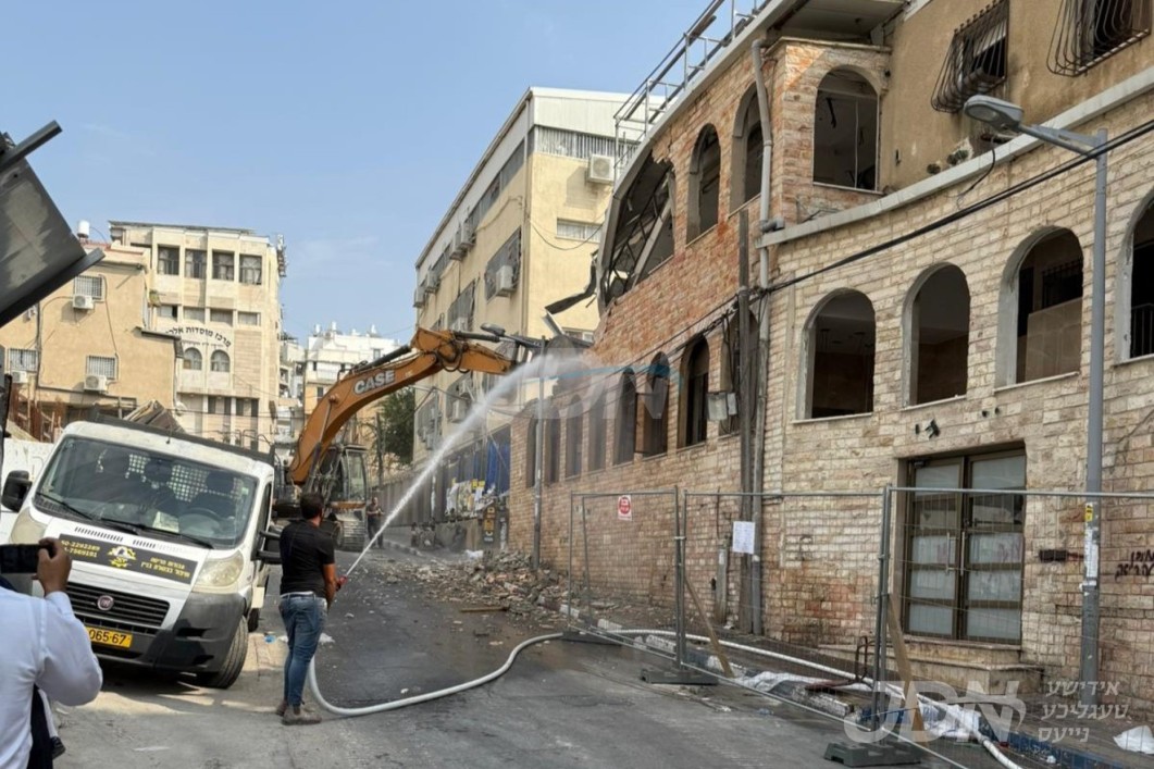 אין די צייט וואס עס האט זיך געשלאסן א העכסט געלונגענע מסע הקודש וואס כ"ק אדמו"ר מאלכסנדר שליט"א האט אונטערגענומען קיין ניו יארק, אויפצוטרייבן פאנטאסטישע סכומים צו פינאנצירן די מאסיווע בוי פראיעקט אויפצובויען די נייע בנין ביהמ"ד הגדול דחסידי אלכסנדר אין בני ברק, איז היינט דינסטאג פארגעקומען שטארקע פארשריט אויפן שטח הבניה, ווען די אלטע בנין בית המדרש איז צעווארפן געווארן צו גרייט מאכן דעם שטח פאר א שפאגל נייע בנין.